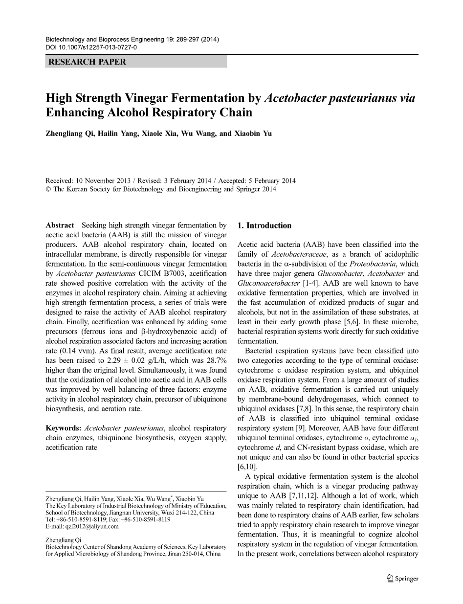 增强乙醇呼吸链的巴氏醋酸杆菌的高强度食醋发酵外文翻译资料