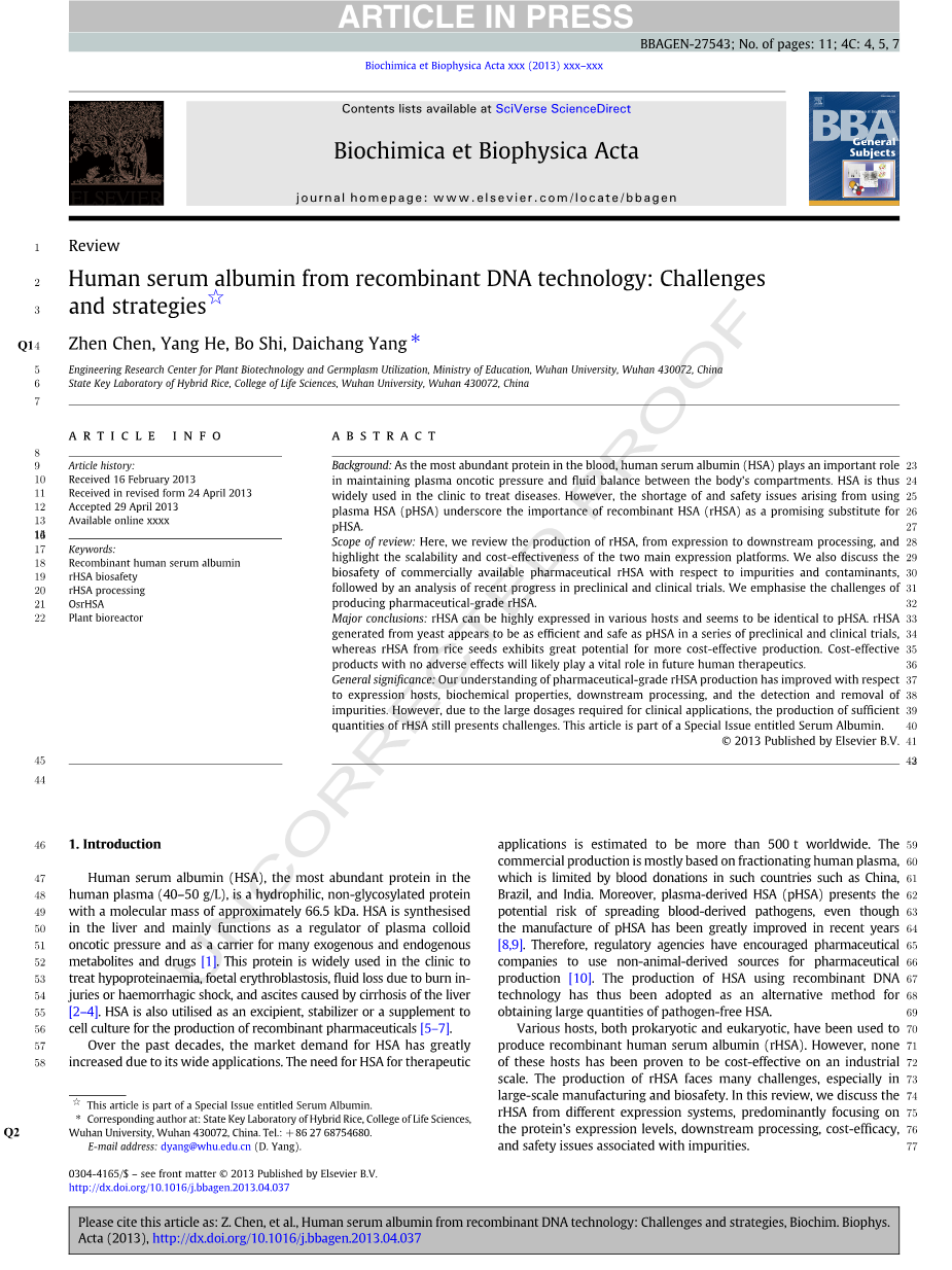 重组DNA人血清白蛋白技术:挑战与策略外文翻译资料
