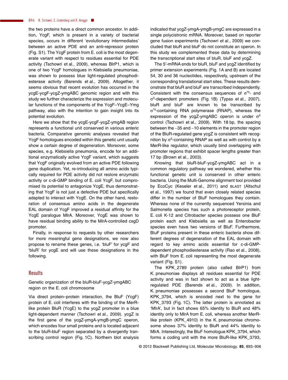 最后,根据其他研究人员对更有意义的基因名称的要求,我们现在还建议重命名这些基因,即ycgF的“ bluF”和ycgE的“ bluR”,并将在下文中使用这些名称。