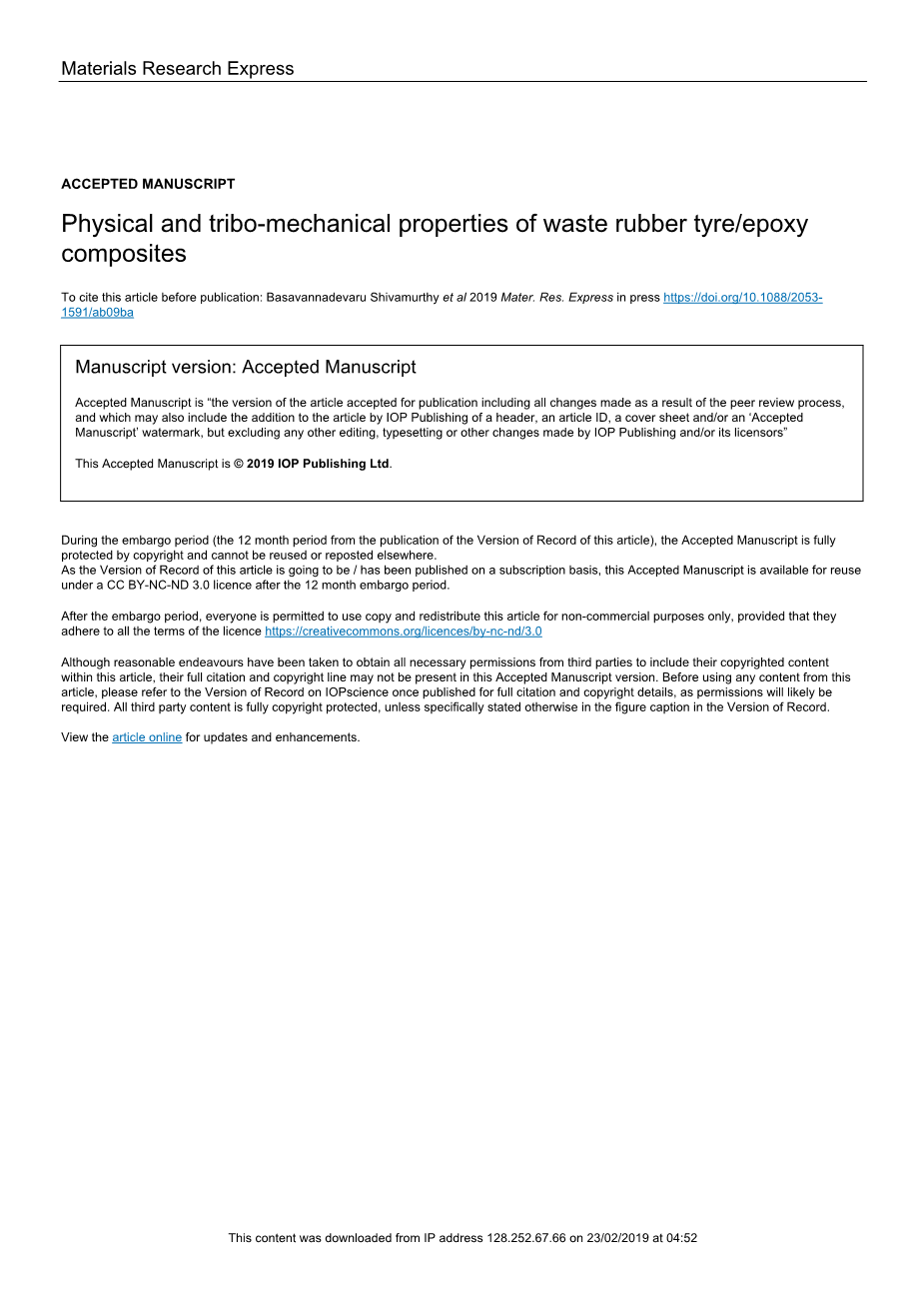 废橡胶轮胎/环氧树脂复合材料的物理和摩擦机械性能