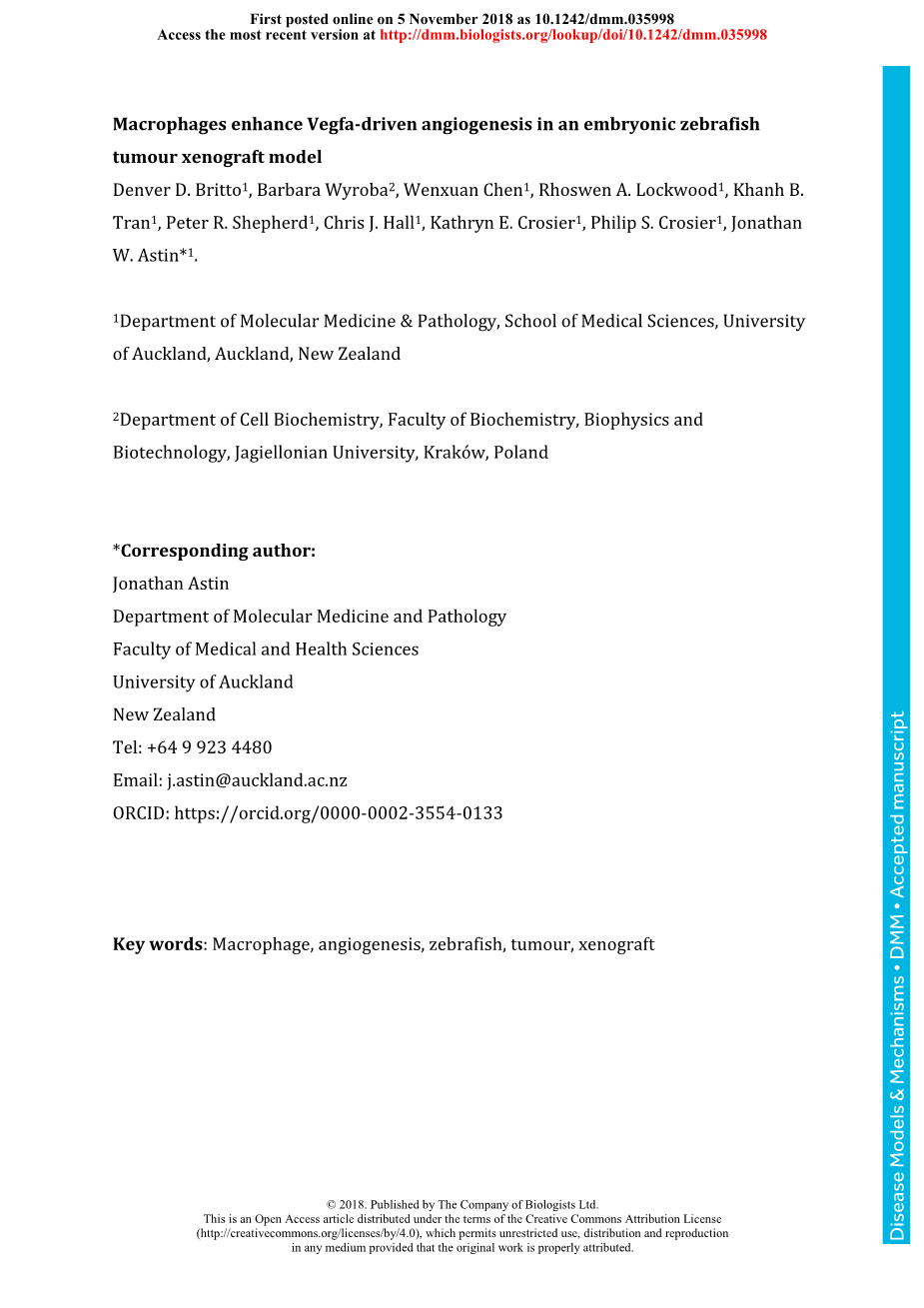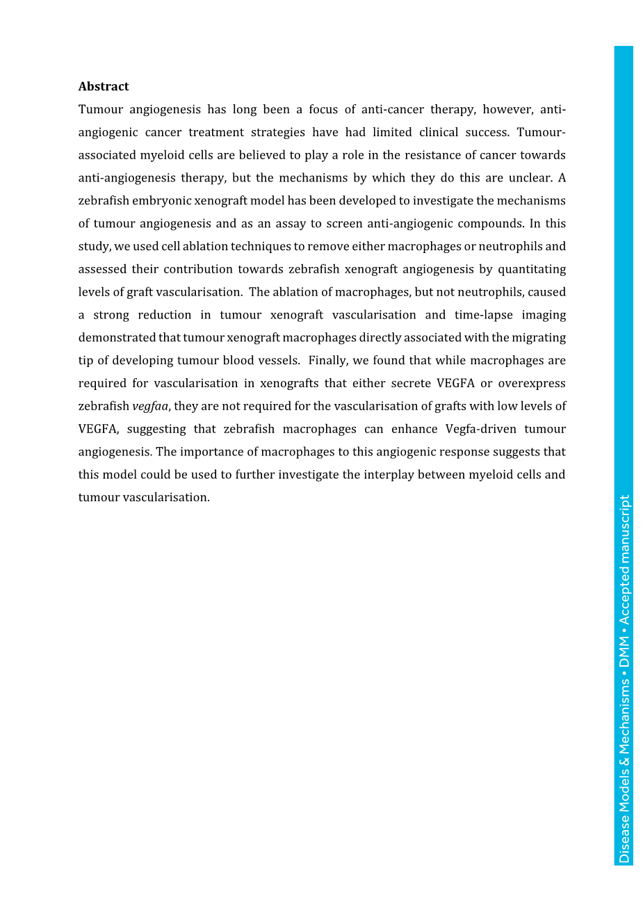 我们对巨噬细胞和中性粒细胞聚集的观察与其他使用该模型的研究一致。我们观察到肿瘤和非肿瘤异种移植物以及Fluosphere移植物中的巨噬细胞和中性粒细胞募集。这种聚集似乎遵循一种模式,即白细胞数量在前注射后6小时增加,随后巨噬细胞数量在接下来的注射后2天减少,证明移植物早期和高水平的白细胞聚集。我们使用氯膦酸脂质体和硝基还原酶介导的细胞消融来减少巨噬细胞数量,对异种移植血管的形成定量测量。我们发现巨噬细胞对于表达VEGFA或斑马鱼vegfaa的异种移植物的有效血管化是必需的,当从表达VEGFA的异种移植物(B16-F1或MDAMB-231)或过表达vegfaa的异种移植物中去除巨噬细胞时,血管化显著减少。我们的数据是基于使用spi1b吗啉代抑制骨髓谱系后血管化减少的定性观察结果,这支持了以前巨噬细胞参与斑马鱼移植血管化的证据。我们的研究结果也支持在小鼠模型上的研究,在小鼠模型中,巨噬细胞的增加或减少分别导致肿瘤血管化的增加或减少,而在人类肿瘤中,巨噬细胞的存在与肿瘤血管生成增加和患者预后不良相关。