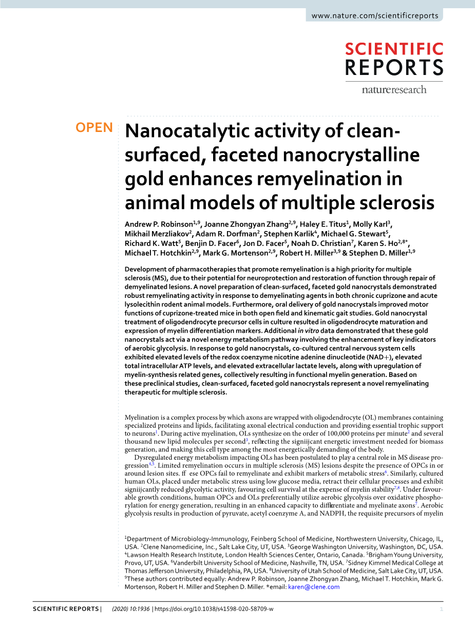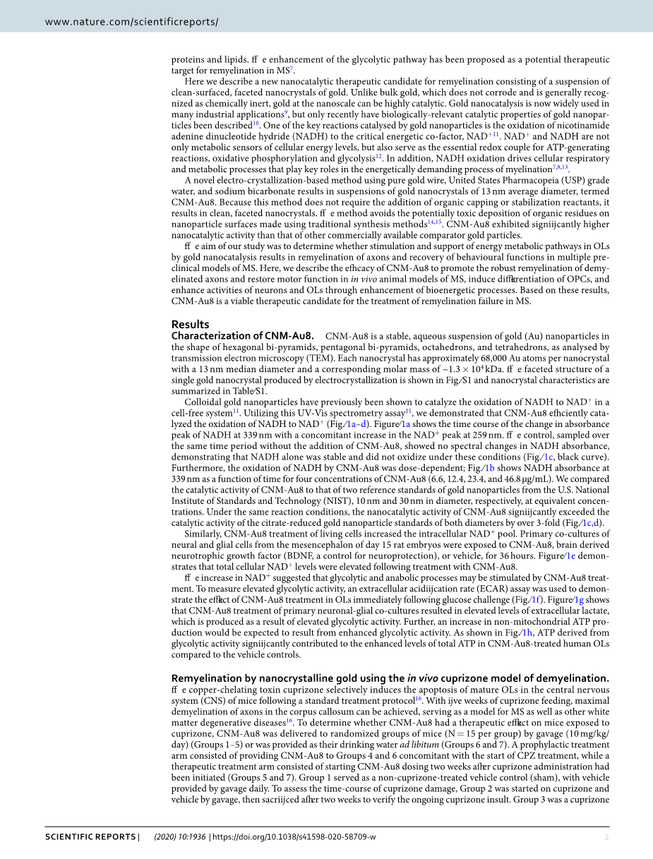 床前的研究表明,表面清洁,有刻面的金纳米晶体代表了一种新的髓鞘再生方法来治疗多发性