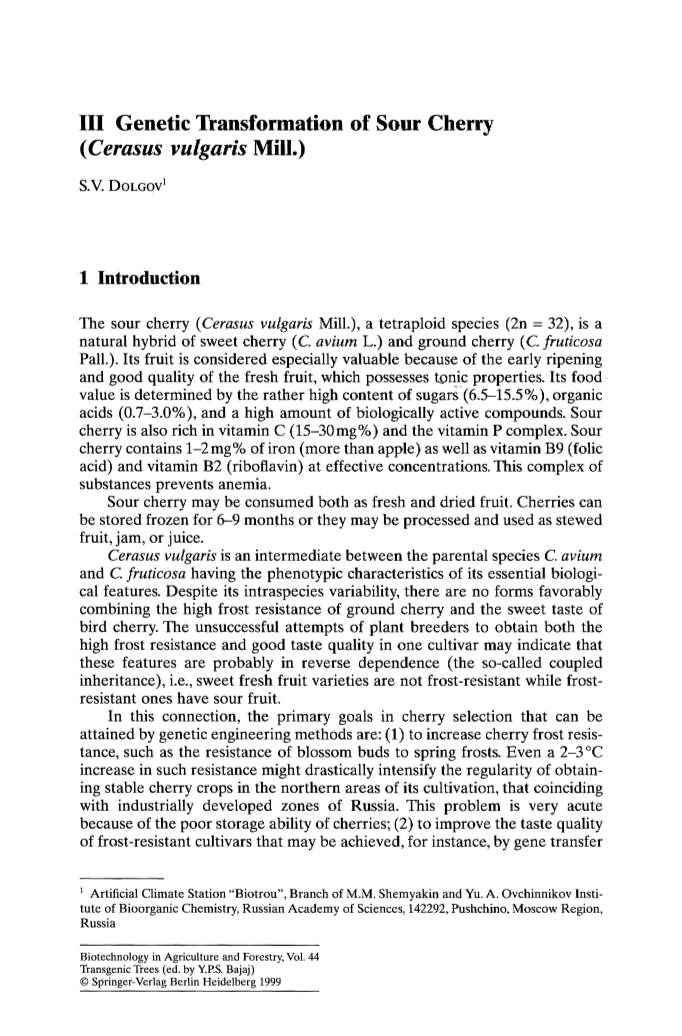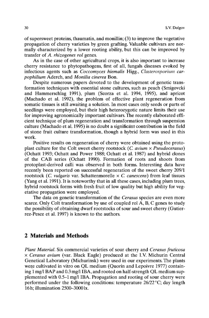 酸樱桃的遗传转化Cerasus vulgaris Mill(欧洲酸樱桃)S. V. DOLGOV