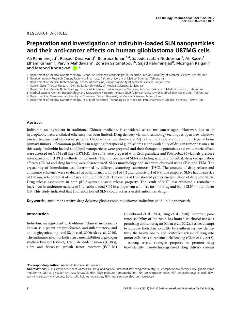 靛玉红是一种中药成分,被认为是一种抗癌药物。然而,由于其疏水性,临床疗效受到限制。纳米技术为癌症患者的治疗打开了新的窗口。多形性胶质母细胞瘤(GBM)是最严重、最常见的原发性肿瘤。胶质母细胞瘤靶向治疗的常见问题之一是肿瘤组织中药物的有效性。本研究在GBM细胞株(U87MG)上制备了负载靛玉红的固体脂质纳米粒,并对其治疗潜力和抗肿瘤作用进行了评价。以棕榈酸十六烷基酯和聚山梨酯80为原料,采用高压均质(HPH)热模法制备了单链淀粉。然后,表征了sln的大小、zeta电位、药物包封率(EE %)和载药量等性能。用扫描电镜(SEM)和透射电镜(TEM)观察了单核细胞的形态和尺寸。采用不同的散射量热法(DSC)测定了该配方的结晶性。在正常脑pH值为7.2和瘤变pH值为6.8时,评价药物释放量和抗肿瘤效果。SLNs的平均尺寸为130 nm, zeta电位为16 mV, EE为99.73%。差示扫描量热法(DSC)测定结果表明,药物包埋在单核细胞内是正确的。