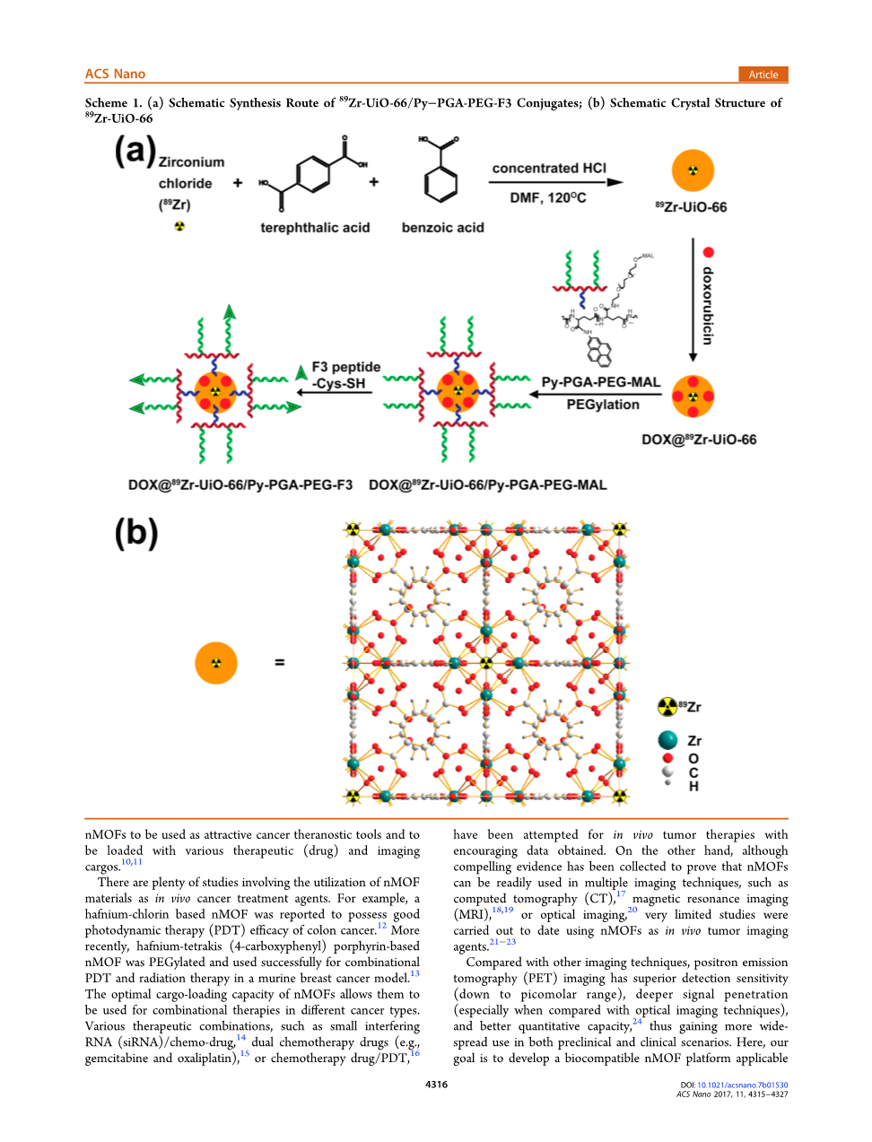 在PET成像和肿瘤靶向方面,为将来的PET引导货物运送癌症做准备。从现有的nmofs库中,选择了含有uio-66 nmof(1,4-苯二甲酸酯(bdc)和苯甲酸(ba)作为桥接连接体)的锆作为模板材料,因为它们以其最佳的表面积而闻名,以及一个独立于连接体、异常稳定的连接体。25#39;26此外,由于现有的Zr6O4(OH)4连接团簇、27个PET同位素Zr89(89Zr,=78.4h)28可以无缝连接。