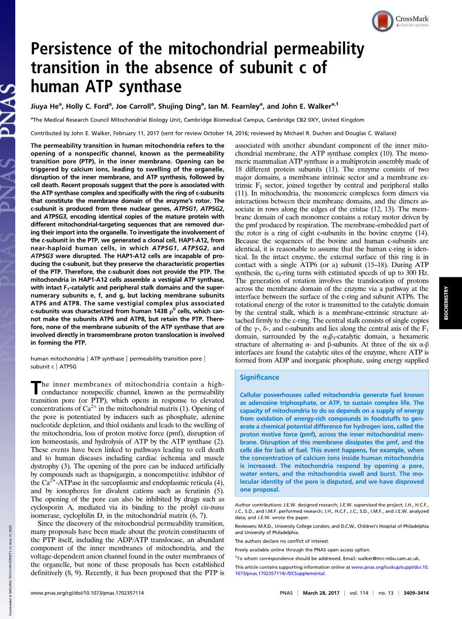 线粒体在没有人体ATP合酶的亚基c时渗透性转 变的持久性外文翻译资料