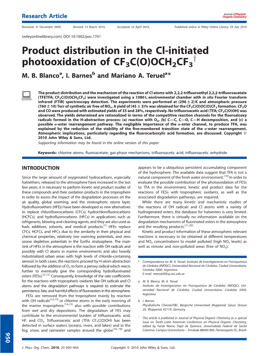 M.B.Blancoa,I.Barnesb和Mariano A.Teruela*