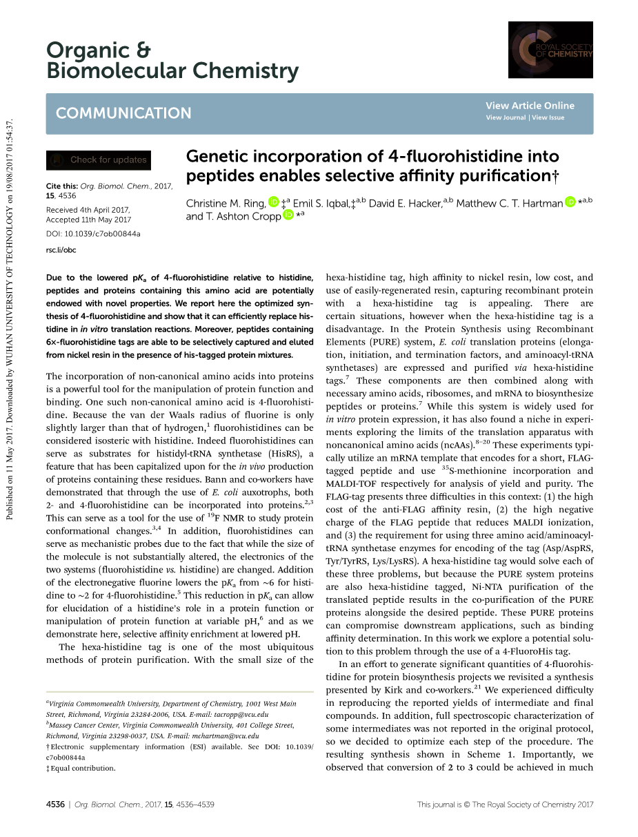 Christine M.Ring,Emil S.Iqbal,David E.Hacker,MatthewC.T.Hartman,and T.Ashton Cropp