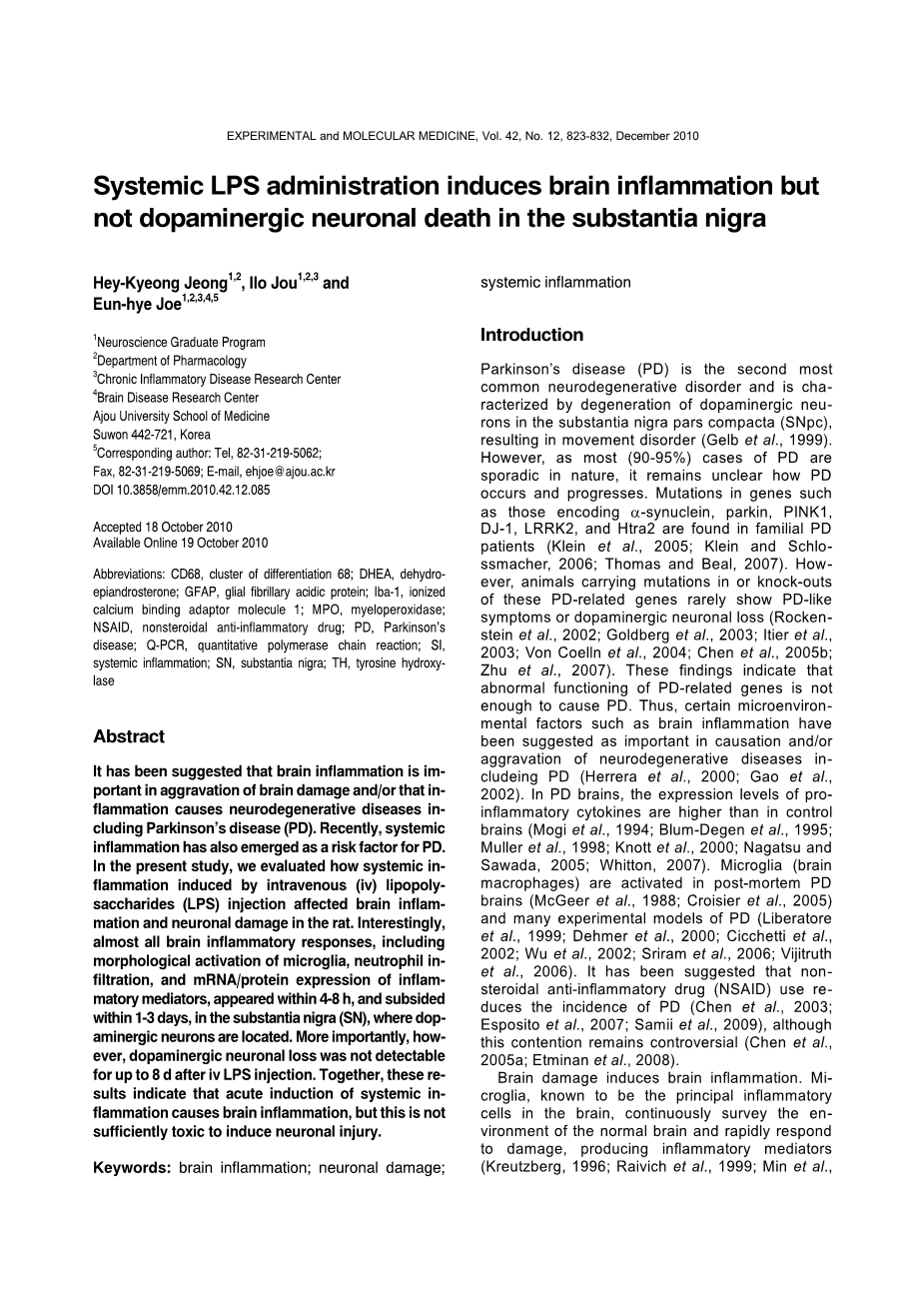 脑损伤的加重或炎症引起的脑炎症对包括帕金森病(PD)在内的神经退行性疾病的发展中起着重要的作用。最近贫血性炎症也已成为PD的危险因素。在本研究中,我们评估了静脉注射脂多糖(LPS)引起的全身炎症对大鼠脑炎症和神经元损伤的影响。有趣的是,几乎所有的脑炎反应,包括微胶质的形态学活化、中性粒细胞浸润和炎症介质的mRNA/蛋白表达。炎症介质的mRNA/蛋白表达在4~8h内出现,1~3天内在多巴胺能神经元所在的黑质(SN)中表达减弱。更重要的是,多多巴胺能神经元丧失是无法检测到的。这些结果表明,急性诱导全身炎症会引起脑炎症,但毒性不足以引起神经元损伤。