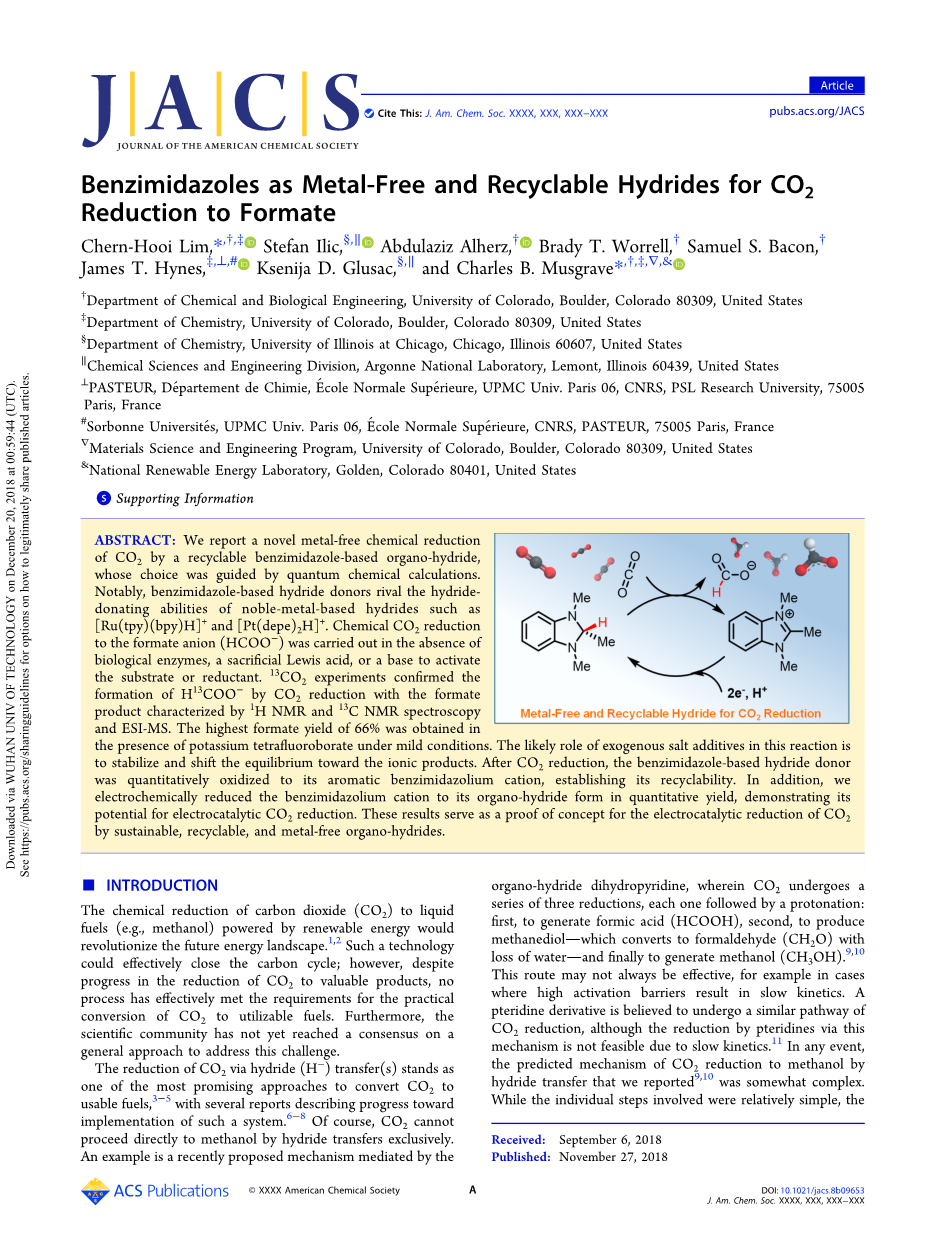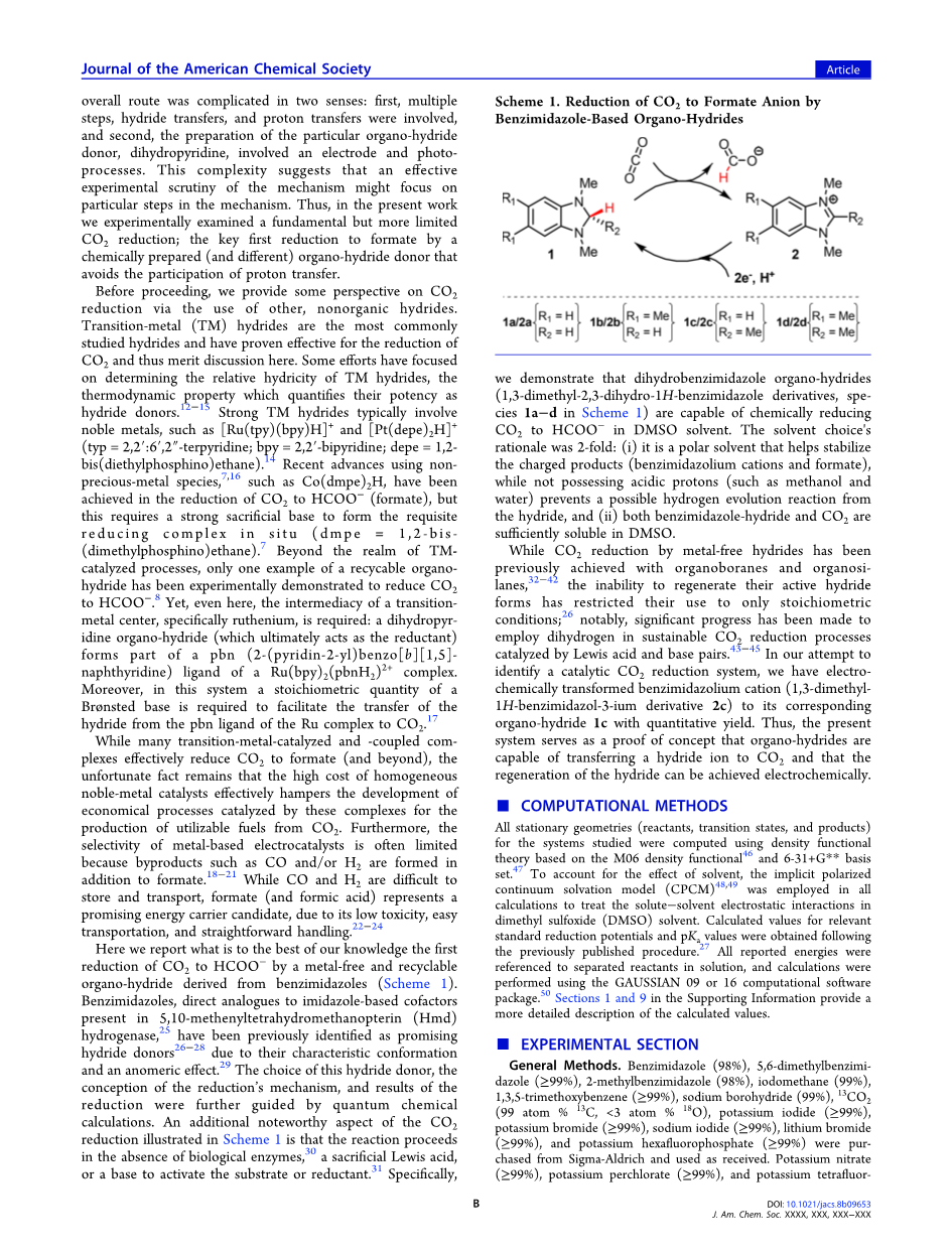 苯并咪唑作为无金属和可回收的氢化物用于CO2还原为甲酸盐