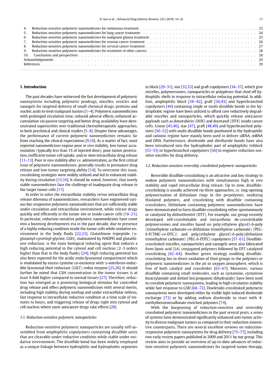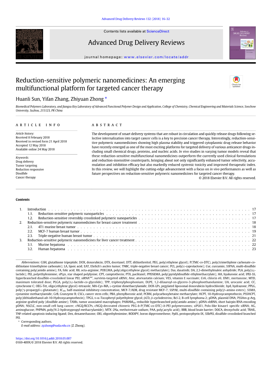 还原敏感高分子纳米药物:一种新兴的靶向癌症治疗多功能平台
