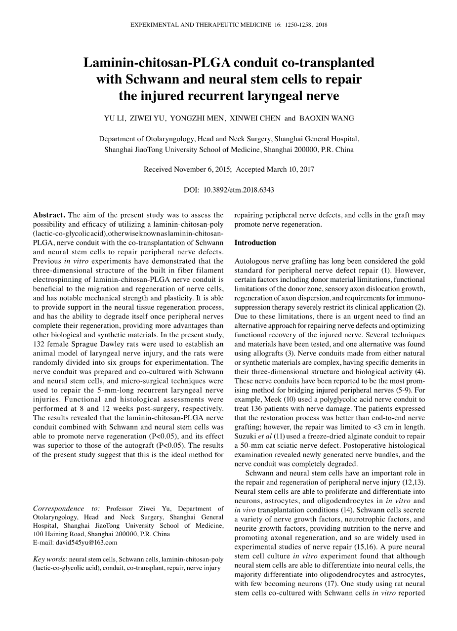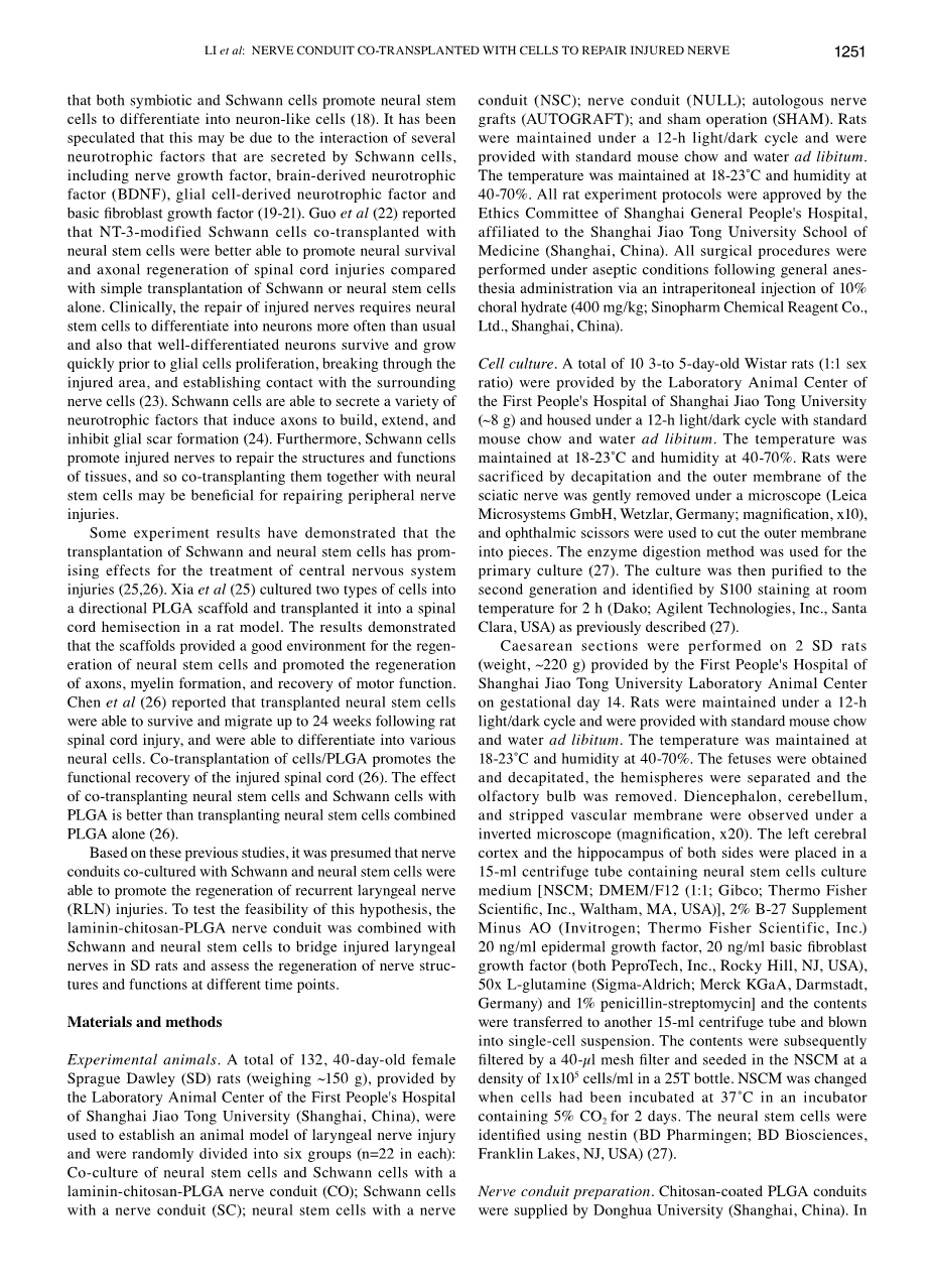 层粘连蛋白-壳聚糖- PLGA导管与雪旺神经干细胞联合移植修复喉返神经损伤外文翻译资料