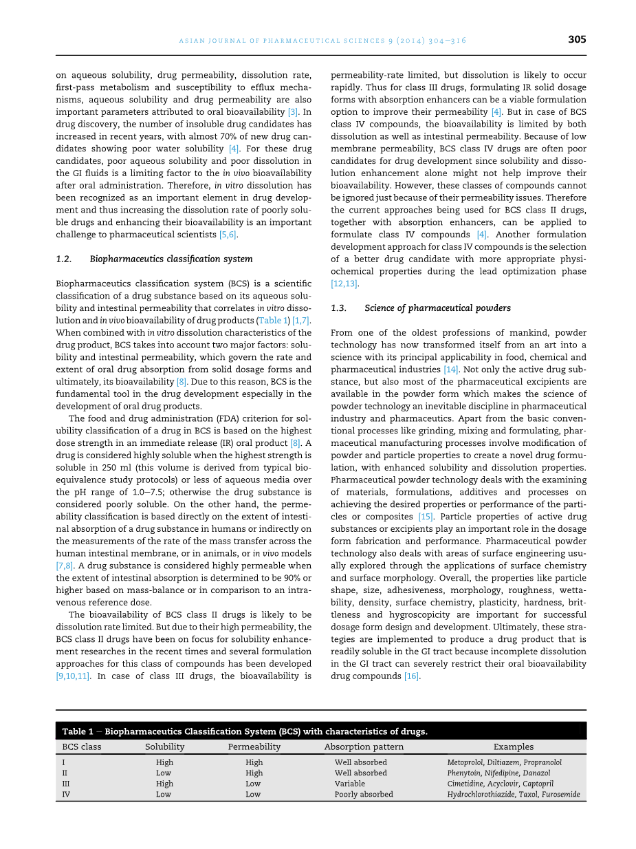 从最古老的人类职业之一来看,粉末技术现已从艺术转变为科学,其主要适用于食品,化学和制药行业[14]。不仅活性药物,而且大多数药物赋形剂都以粉末形式提供,这使得粉末技术科学成为制药工业和制药学中不可避免的学科。除了基本的传统工艺如研磨,混合和配制外,制药工艺还包括粉末和颗粒性质的改进,以产生具有增强的溶解性和溶出的新型药物配方。制药粉末技术研究材料,配方,添加剂和工艺,以实现颗粒或复合材料的所需性质或性能[15]。活性药物物质或赋形剂的颗粒性质在剂型制造和性能中起重要作用。制药粉末技术还涉及表面工程领域,通常通过表面化学和表面形态的应用进行探索。总之,颗粒形状,尺寸,粘合性,形态,粗糙度,润湿性,密度,表面化学,可塑性,硬度,脆性和吸湿性等性质对于成功的剂型设计和开发是重要的。最终,实施这些策略是为了生产易溶于胃肠道的药物产品,因为胃肠道中的不完全溶解会严重限制其口服药物化合物的生物利用度[16]。