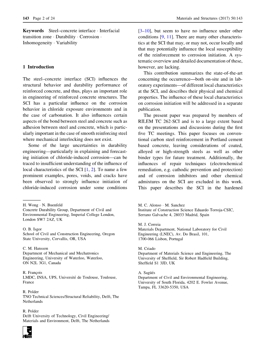 本文件由RILEMTC262-SCI成员编写,并且在很大程度上基于前五次技术委员会会议的介绍和讨论。本文重点介绍波特兰水泥基混凝土中的传统碳钢增强材料,考虑涂层,合金或高强度钢以及其他未来处理的粘结剂类型。此外,本工作不包括修复技术(电化学修复,如阴极预防和保护)以及腐蚀抑制剂和其他化学外加剂对脊髓损伤的影响。本文描述了硬化混凝土在初始水泥水化和钢钝化之后,但在腐蚀开始之前(即在所谓的初始阶段考虑被动钢的SCI)(图1)的SCI。这个阶段的时间范围往往构成了工程结构使用寿命的重要部分。