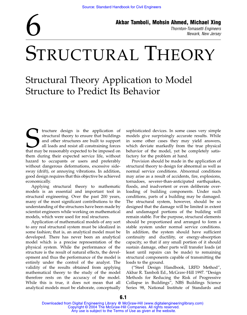 将结构理论应用于数学模型是结构工程中必不可少的重要工具。在过去的200年里,对理解这些结构具有重大贡献的理论是科学工程师在研究数学模型时制造的,而这些数学模型是用于实际结构的。