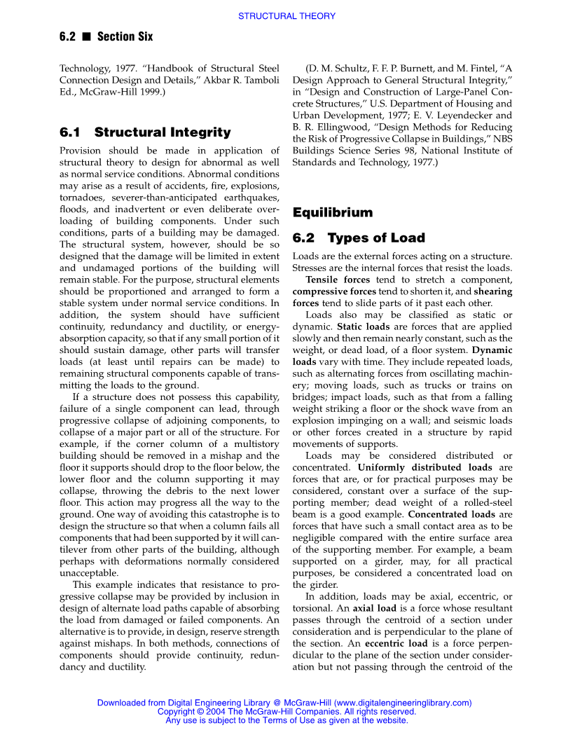 设计中应尽量使用最大载荷。对于建筑,最小设计负荷应为当地建筑法规或规定的预期的条件,作用在适用的地方。“建筑物和其他结构的最低设计负荷”,ASCE 7-93,美国土木工程师协会,莱斯顿,弗吉尼亚州,(www.asce.org)。公路和公路桥梁的最小设计荷载 应该是那些在“公路桥梁标准规范了,”美国国家公路和运输官员,华盛顿,D.C.(www.transportation,org)。铁路 铁路-公路桥梁,最低设计负荷应该是那些在“铁路工程手册”,美国铁路工程和维护的道路协会,芝加哥(www.arema.org)。