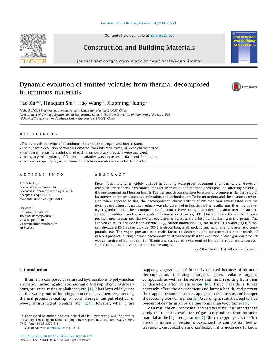 沥青材料 热分解 挥发性污染 分解机制 消防安全