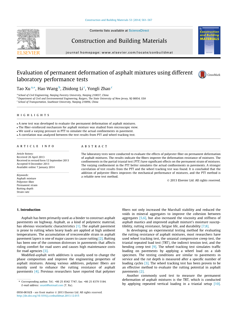 Kai Huang a, Tao Xu a,uArr;, Guofen Li a, Ruilin Jiang b,a School of Civil Engineering, Nanjing Forestry University, 159, Longpan Road, Nanjing 210037, Jiangsu, China b Jiangsu Modern Highway amp; Bridge Co. Ltd., 2, Xianlin Avenue, Nanjing 210046, Jiangsu, China