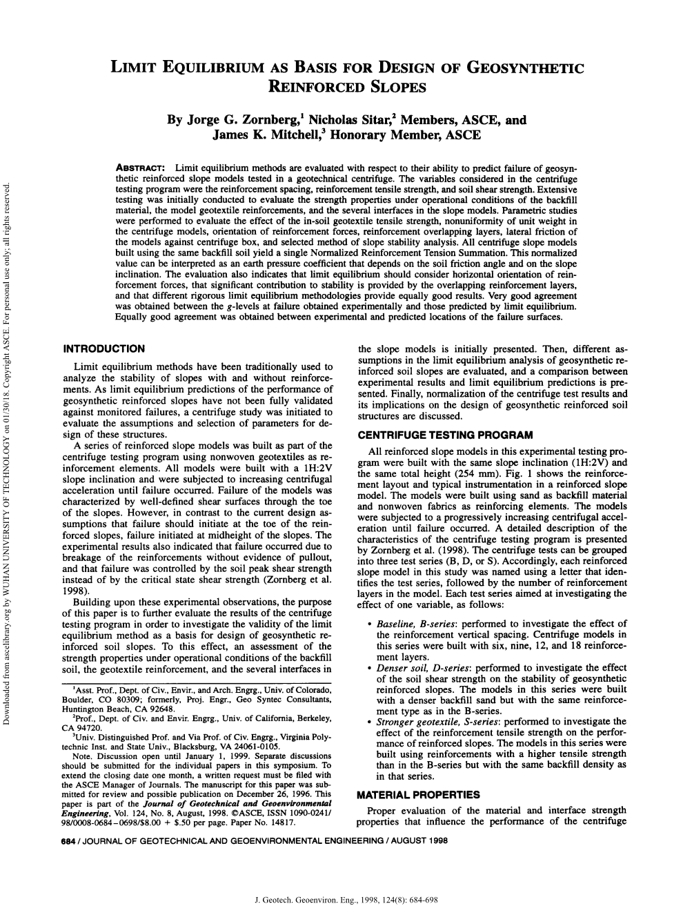 By Jorge G. Zornberg,Nicholas Sitar,Members, ASCE, and James K. Mitchell, Honorary Member, ASCE