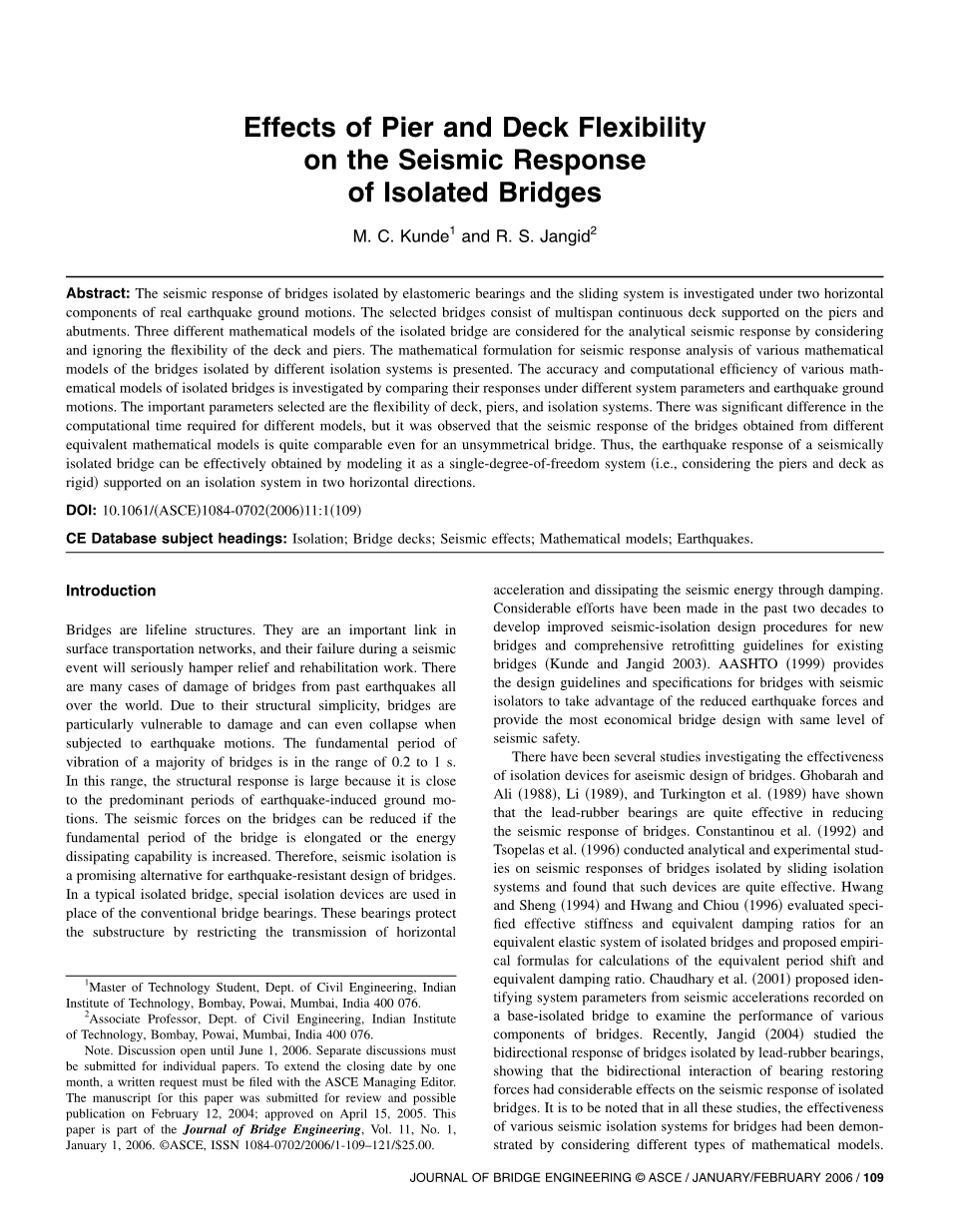 CE数据库主题标题:隔离; 桥甲板 地震效应; 数学模型;地震