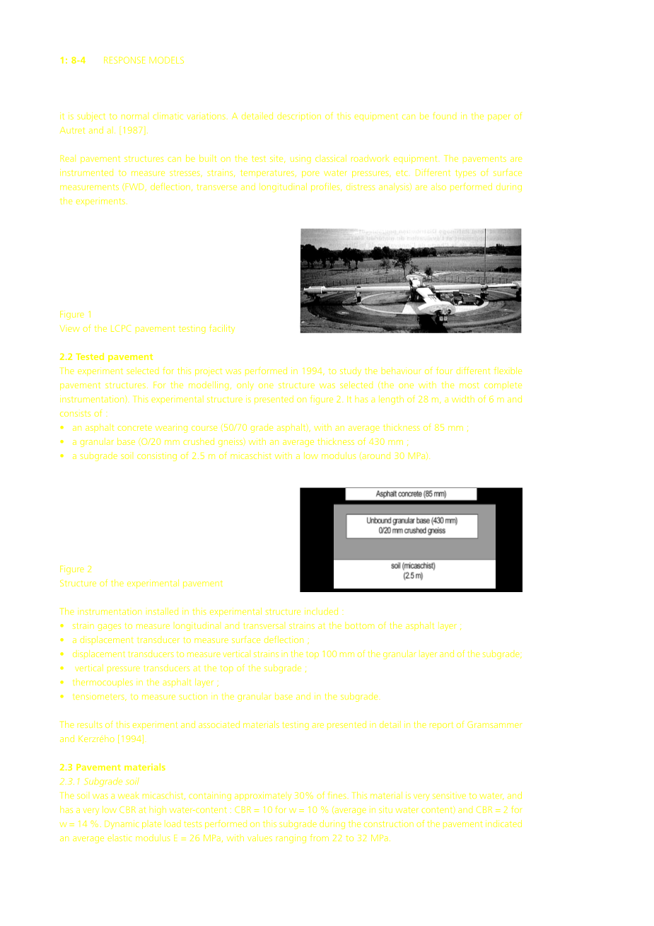 LCPC在南特的圆形疲劳测试轨道(见图1)允许在实际尺寸条件下测试6m宽和112m长的路面结构:实际轴载(90至150 kN),速度(最高时速90公里)和大量的负载循环(多达几百万个负载)。在实验过程中,车轮的侧向位置会发生变化,以模拟实际交通造成的载荷分布。测试跑道是室外安装的,并且会受到气候变化的影响。该设备的详细说明可以在Autret等人的论文中找到。