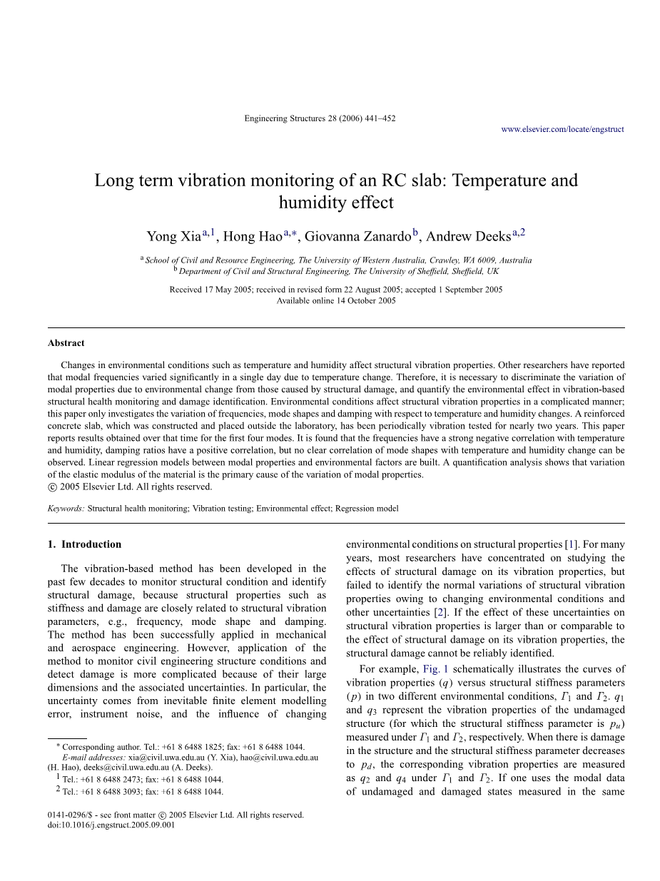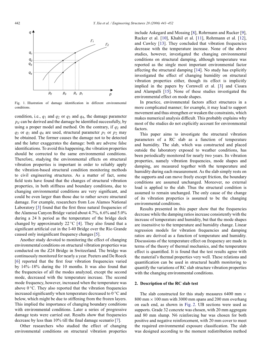 同时,近些年人们对损伤检测技术产生很大兴趣,Lamet al. 采用了一种统计模型修正法来求算结构由于损伤造成的刚度衰减。他们的研究显示,选择一组合适的模型是损伤检测成功的关键。Bernal和Gunes提出了一种相对通常的策略,他们通过研究结构的合成挠度矩阵的变化及量化结构损伤的模型,来讨论信息通常是从损伤区域的哪个部分被首先提取出来的。