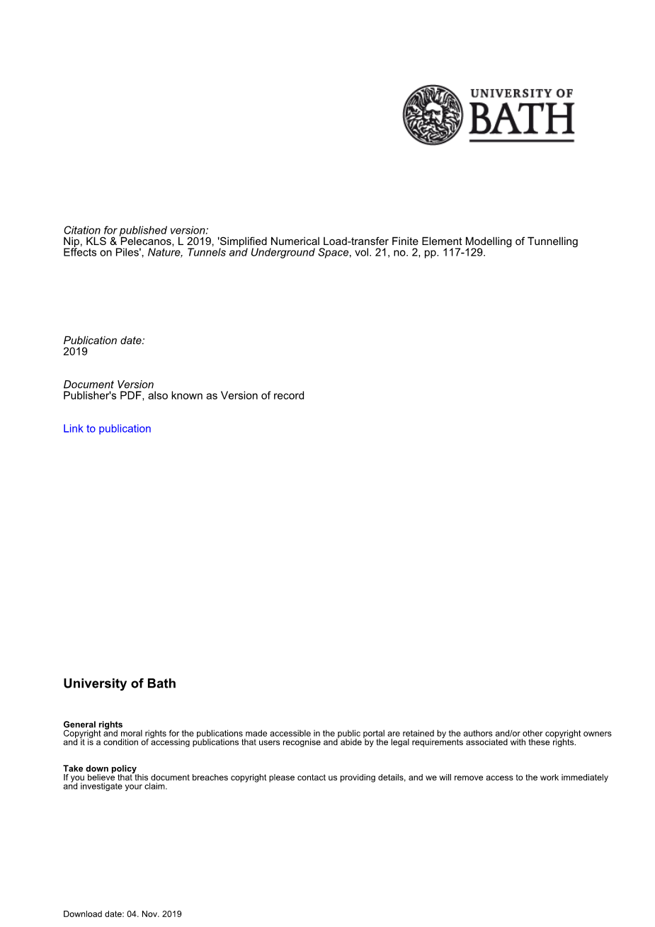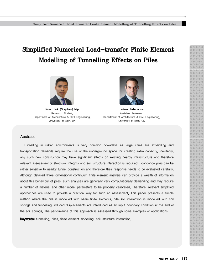 发表论文引证:Nip, KLS amp; Pelecanos, L 2019,《隧道效应对桩的简化数值荷载传递有限元建模》,《自然、隧道与地下空间》,第21卷,第1期。2,页117 - 129。