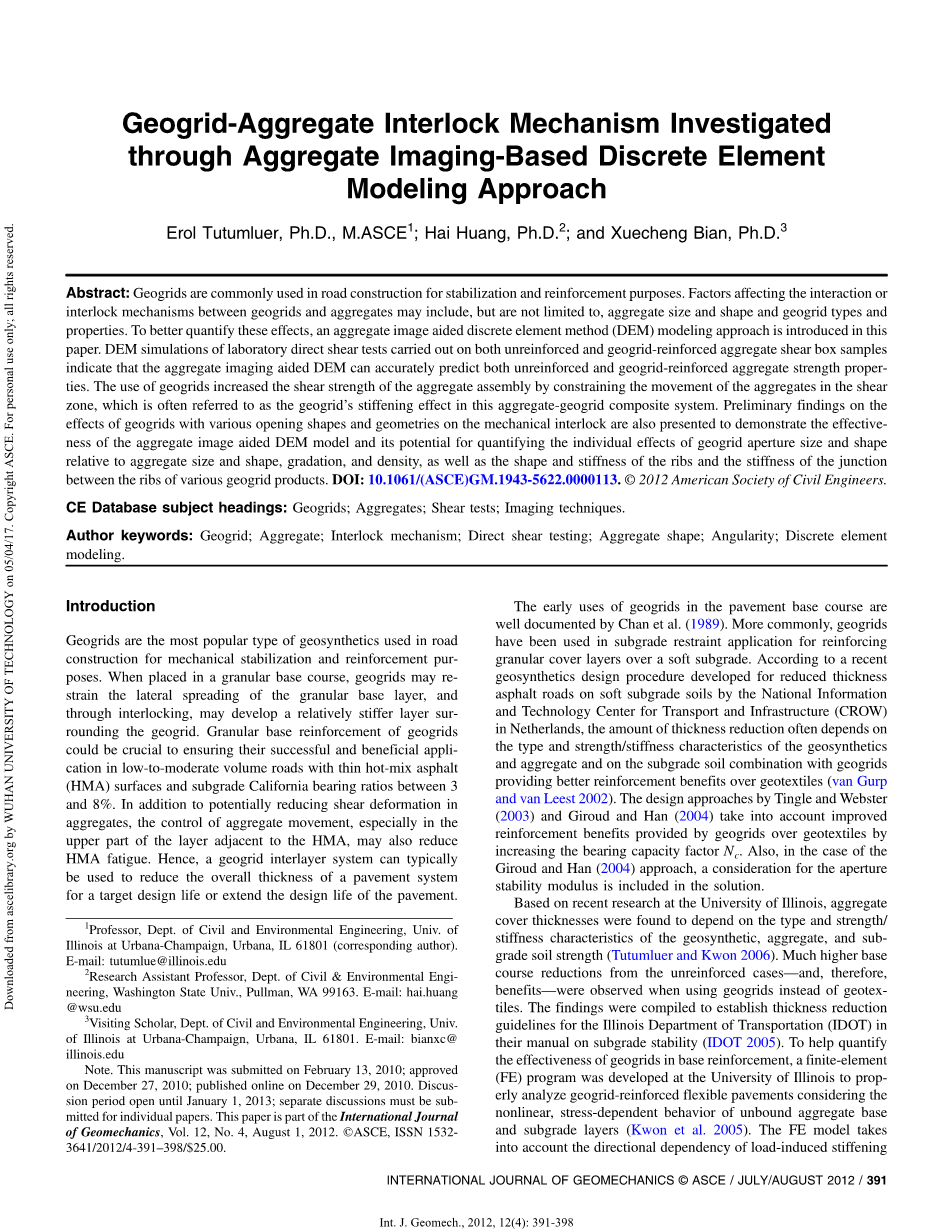 1.伊利诺伊州厄巴纳61801,伊利诺伊大学厄巴纳-香槟分校土木与环境工程系教授,(第一作者)。电子邮箱:tutumlue@ilinois.edu