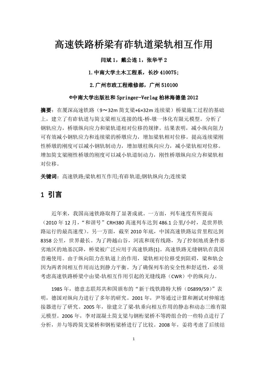 高速铁路大跨桥梁无缝钢轨同步伸缩调节研究外文翻译资料 2022-02-08 20:16:04 英语原文共 25 页,剩余内容已隐藏,支付完成后下载完整资料 英语原文共 15 页,剩余内容已隐藏,支付完成后下载完整资料资料编号:[17236],资料为PDF文档或Word文档,PDF文档可免费转换为Word 原文和译文剩余内容已隐藏,您需要先支付 30元 才能查看原文和译文全部内容!立即支付 发小红书推广免费获取该资料资格。点击链接进入获取推广文案即可: Ai一键组稿 | 降AI率 | 降重复率 | 论文一键排版 PREVIOUS NEXT 您可能感兴趣的文章 一块钢筋混凝土板的长期振动监测:温度和湿度的影响外文翻译资料 基于应力影响线的大跨度桥梁结构损伤识别研究外文翻译资料 4.6钢筋混凝土桥面板设计外文翻译资料 钢-混组合连续梁施工过程分析|外文翻译资料 二杆桁架结构几何非线性行为分析外文翻译资料 利用分子仿真模型沥青的性能分析外文翻译资料 不同损伤条件下严重损坏的钢筋混凝土柱的快速修复的实验研究外文翻译资料 沉管灌注桩的施工控制可靠性外文翻译资料 结合桥梁与隧道的高速公路线形优化外文翻译资料 斜拉桥的屈曲稳定性的简化评估外文翻译资料