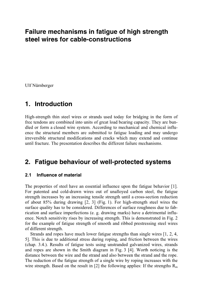 如今,桥接形式中由自由筋合并成的高强度薄钢丝或钢绞线具有较强的承载能力。它们被捆绑或合并为一个封闭的金属丝系统。根据机械和化学的影响,结构构件会受到疲劳载荷的影响,并可能经历不可逆的结构改变和裂缝,这些结构的改变和裂纹可能会延伸并直至断裂。本文描述了不同的失效机制。