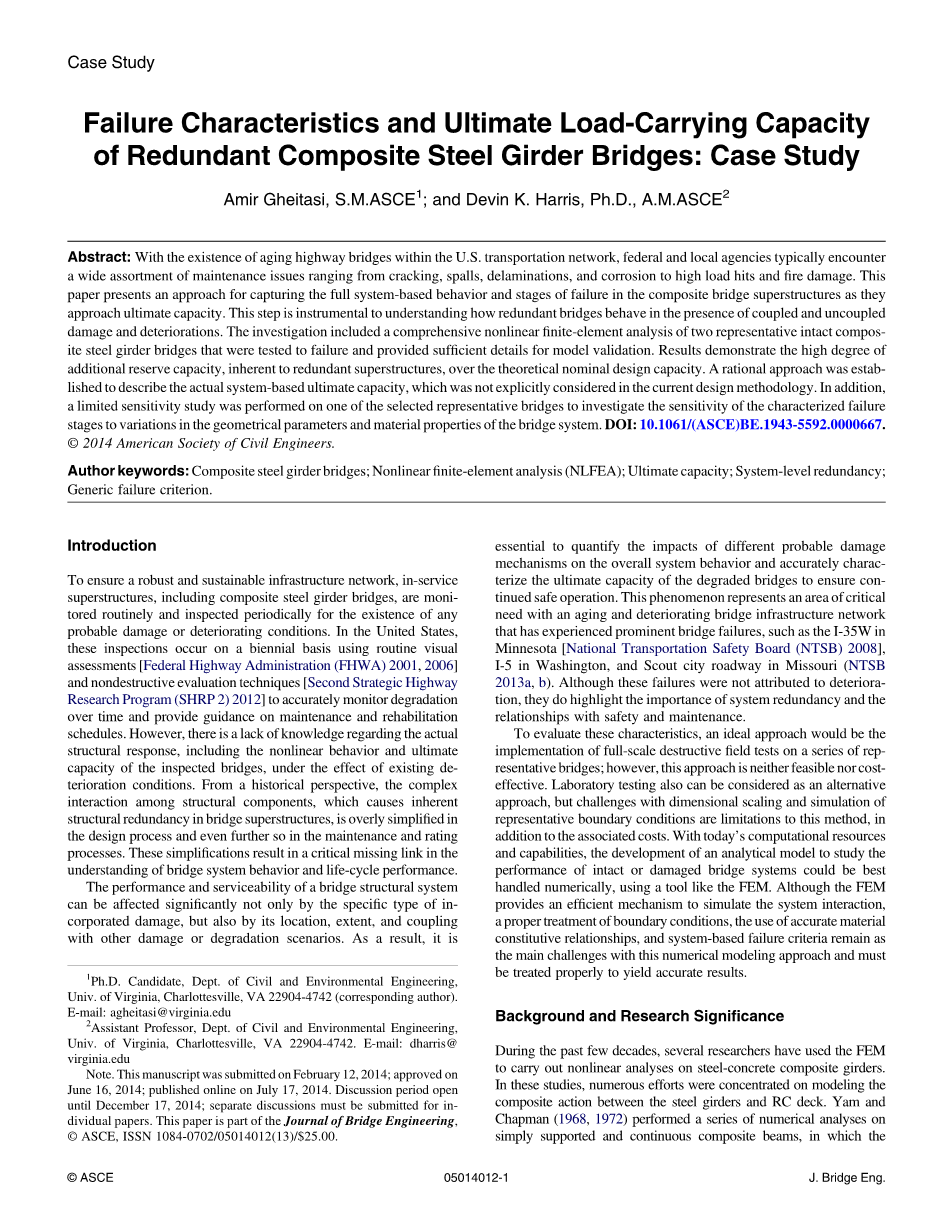 Amir Gheitasi S.M.ASCE1;德文K.哈里斯博士,A.M.ASCE2。