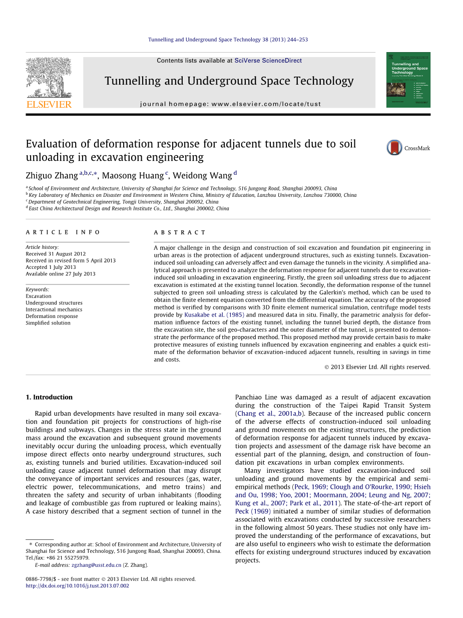 城市快速发展导致了许多土壤挖掘以及高层建筑的基坑工程建筑物和地铁。地面应力状态的变化挖掘和随后的地面移动周围的质量在卸载过程中不可避免地发生,最终对附近的地下结构施加直接影响等如现有的隧道和地下公用设施。挖掘引起的土壤卸载导致相邻的隧道变形可能会中断重要的服务和资源(天然气,水,电力,电信和地铁列车)和威胁城市居民的安全和保障(洪水以及从破裂或泄漏的主电源泄漏可燃气体)。一个案例的历史描述了隧道中的一段隧道盘桥线因相邻开挖而受损在台北捷运系统建设期间(Chang等,2001a,b)。由于公众的关注增加建筑导致土壤卸载的不利影响和现有结构的地面运动,预测相邻隧道开挖引起的变形响应项目和损失风险的评估已成为一项挑战基础的规划,设计和建设的基本部分在城市复杂的环境中挖掘坑洞。许多研究人员已经研究了挖掘引起的土壤卸载和地面运动的经验和半经验方法。