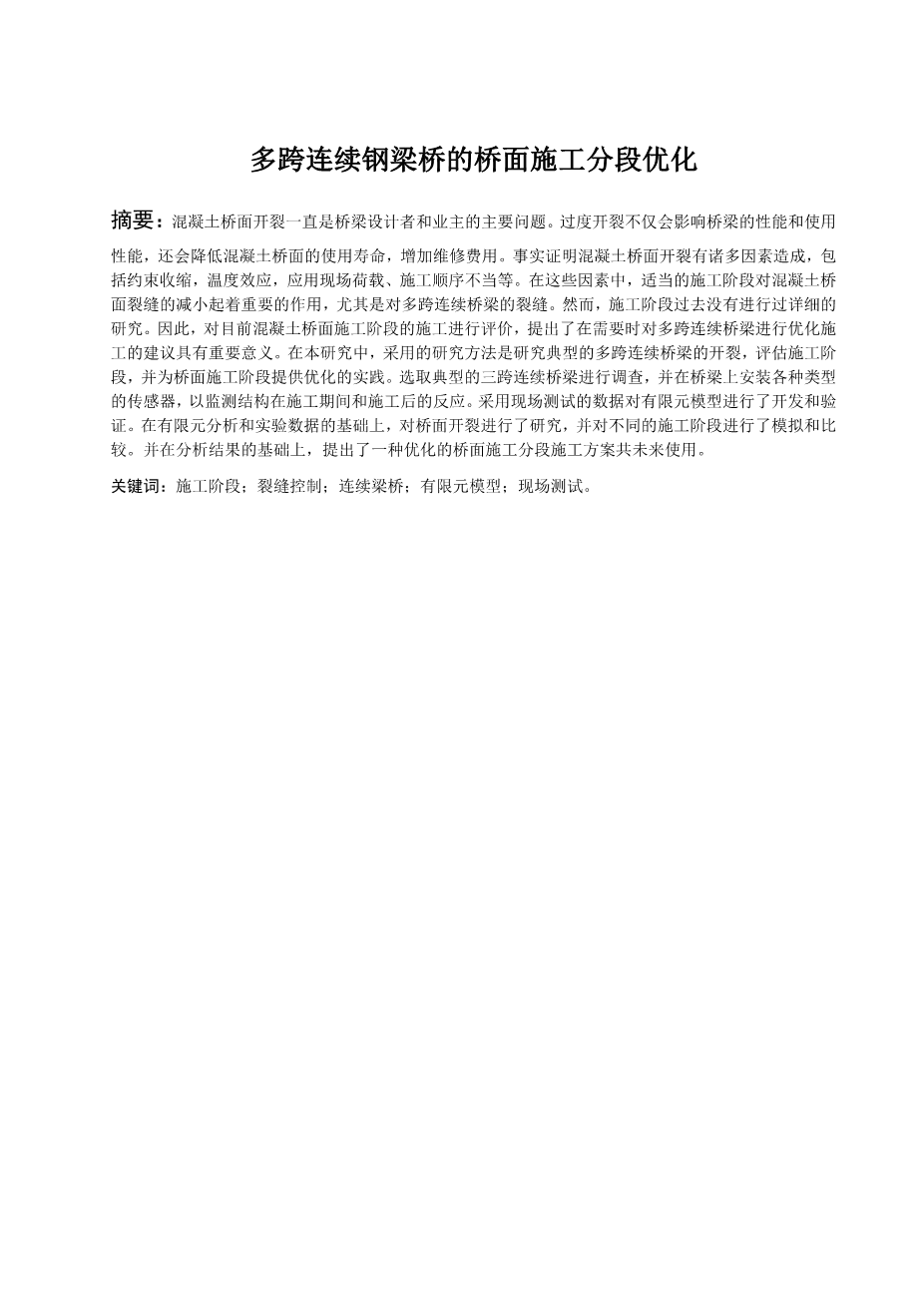 某连续梁桥结构计算分析研究外文翻译资料 2022-03-22 21:57:56 英语原文共 11 页,剩余内容已隐藏,支付完成后下载完整资料 英语原文共 18 页,剩余内容已隐藏,支付完成后下载完整资料资料编号:[15748],资料为PDF文档或Word文档,PDF文档可免费转换为Word 原文和译文剩余内容已隐藏,您需要先支付 30元 才能查看原文和译文全部内容!立即支付 发小红书推广免费获取该资料资格。点击链接进入获取推广文案即可: Ai一键组稿 | 降AI率 | 降重复率 | 论文一键排版 PREVIOUS NEXT 您可能感兴趣的文章 一块钢筋混凝土板的长期振动监测:温度和湿度的影响外文翻译资料 基于应力影响线的大跨度桥梁结构损伤识别研究外文翻译资料 4.6钢筋混凝土桥面板设计外文翻译资料 钢-混组合连续梁施工过程分析|外文翻译资料 二杆桁架结构几何非线性行为分析外文翻译资料 利用分子仿真模型沥青的性能分析外文翻译资料 不同损伤条件下严重损坏的钢筋混凝土柱的快速修复的实验研究外文翻译资料 沉管灌注桩的施工控制可靠性外文翻译资料 结合桥梁与隧道的高速公路线形优化外文翻译资料 斜拉桥的屈曲稳定性的简化评估外文翻译资料