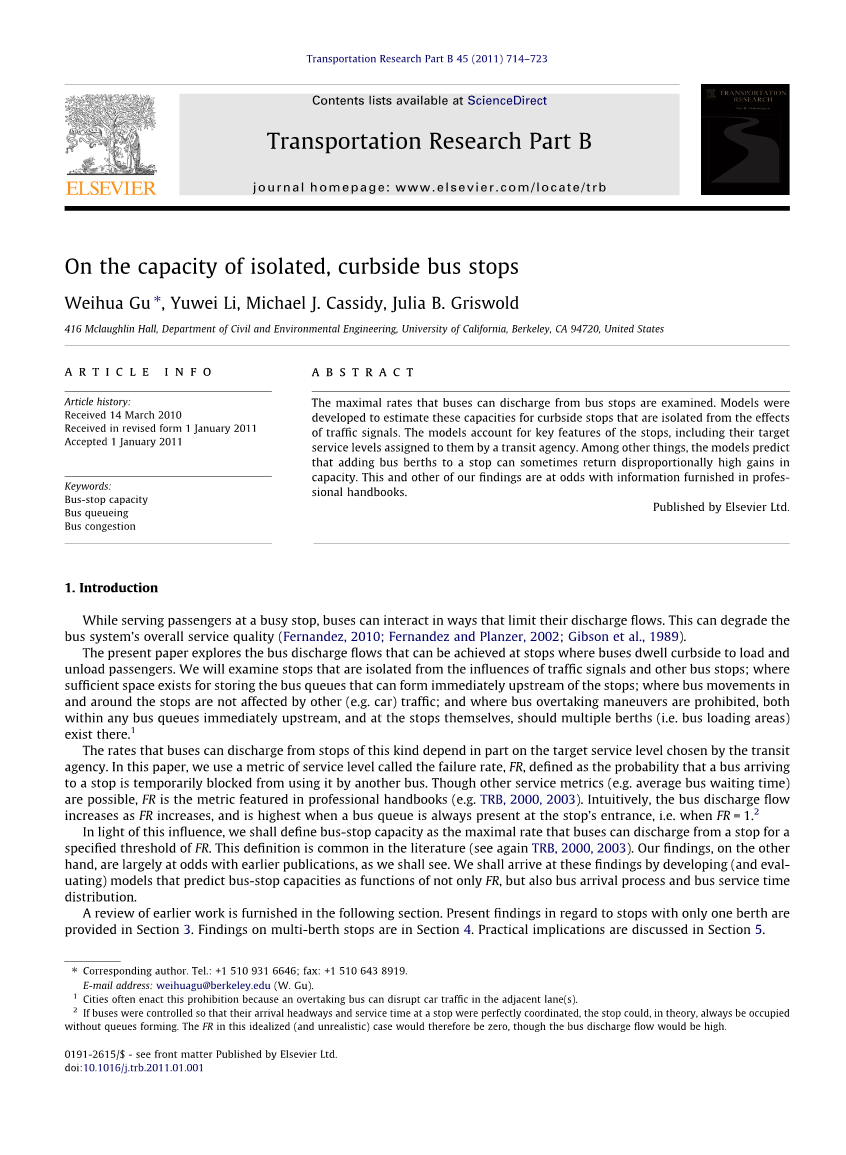 同样,关于提高多泊位站点通行能力的研究,通过以某种方式调度公共汽车(Gardner等人,1991;Szaacute;sz等,1978),或通过重新设计停车位的几何形状(Gibson et al。,1989; 圣雅克和莱文森,1997年等)仅提供有限的作用。 用参数来估计公共汽车到达过程(Danas,1980; Fernandez,2001; Ge,2006; Kohler,1991)和服务时间分布(Ge,2006; St. Jacques和Levinson,1997 )也是如此。