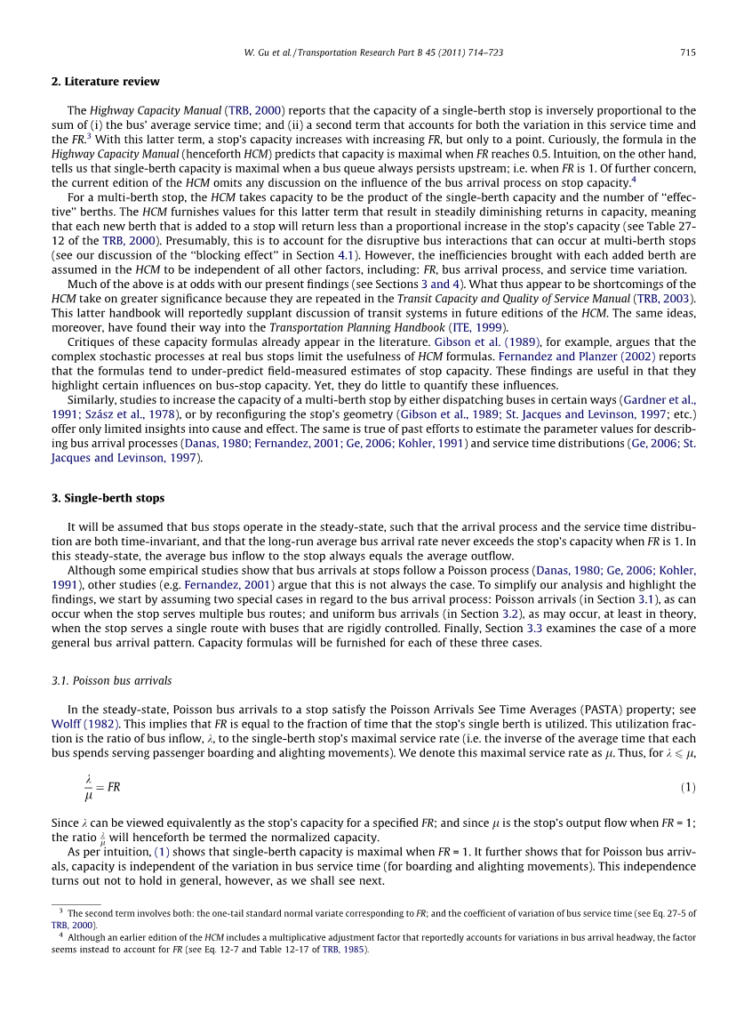 根据直觉,(1)表明当FR = 1时,单泊位通行能力最大。进一步表明,对于泊松公共汽车到达,容量通行能力与公交车服务时间(上下车移动)的变化无关。 然而,这个独立性并不总是如此,我们将在下面看到。
