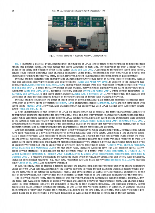 以前的研究关注速度限制对驾驶行为的影响,特别关注超速问题,如驾驶员的速度感知(Milliken,1998年)、期望速度(Mannering,2009年)和遵守速度限制(Mevius,2011年)。然而,对于DPLSL高速公路上的车道变换行为还没有进行充分的调查(Yang和Sun,2012年)。