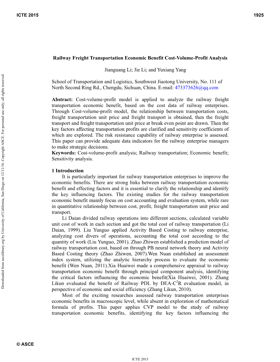 关键词:成本-数量-利润分析;铁路运输;经济效益;敏感性分析。