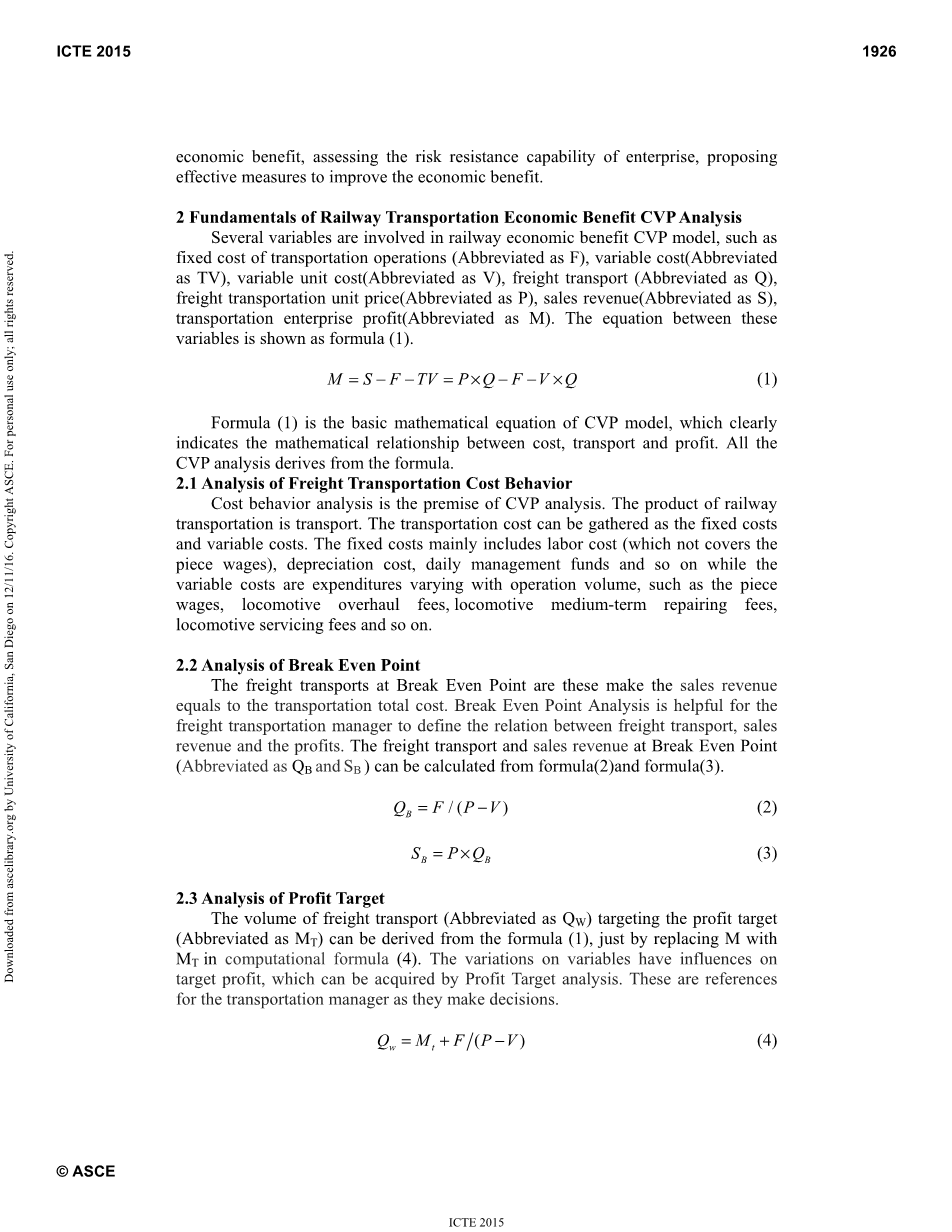 大多数现存的研究都是从宏观层面评估铁路运输企业经济效益的,而对利润的数学计算公式的探讨却缺乏。本文将CVP模型应用于铁路运输经济效益的研究,它致力于找出影响铁路运输经济效益的关键因素,综合评估企业的抗风险能力,提出提高经济效益的有效措施。
