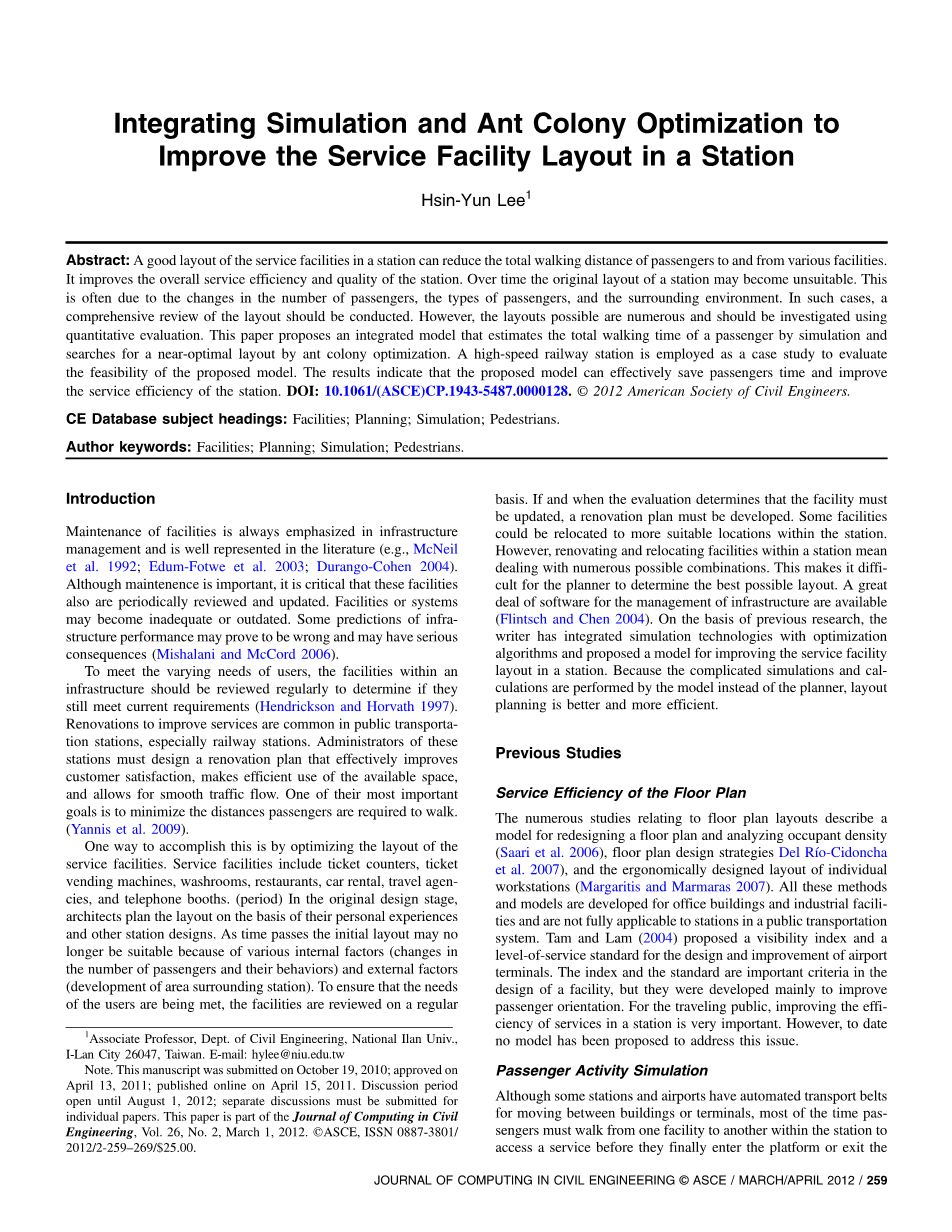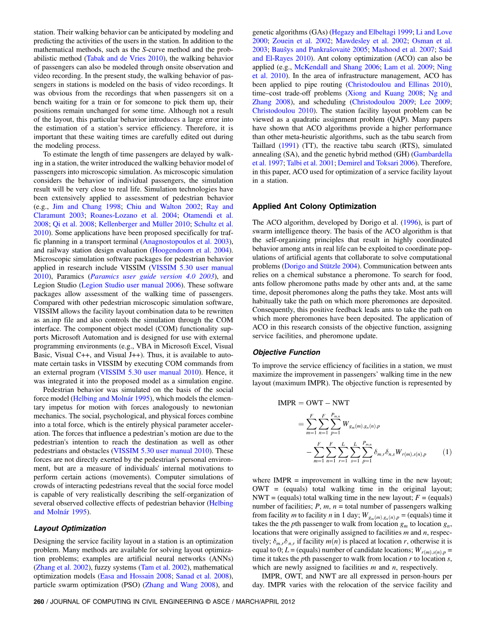 集成仿真和蚁群优化用于改善车站的服务设施布局外文翻译资料 2022-08-08 15:43:26 英语原文共 12 页,剩余内容已隐藏,支付完成后下载完整资料 英语译文共 11 页,剩余内容已隐藏,支付完成后下载完整资料 资料编号:[257148],资料为PDF文档或Word文档,PDF文档可免费转换为Word 原文和译文剩余内容已隐藏,您需要先支付 30元 才能查看原文和译文全部内容!立即支付 发小红书推广免费获取该资料资格。点击链接进入获取推广文案即可: Ai一键组稿 | 降AI率 | 降重复率 | 论文一键排版 PREVIOUS NEXT 您可能感兴趣的文章 基于仿真的动态交通分配模型的应用外文翻译资料 微观交通仿真外文翻译资料 在交通分析中的模拟方法外文翻译资料 基于大数据和深度学习方法的极端交通条件下的大 规模全覆盖交通速度估算一中 国案例研究外文翻译资料 车辆一轨道系统垂向相互作用的详细模型外文翻译资料 行人通过狭窄的门道:个体行为对全球流动和微观 动力学的影响外文翻译资料 桥梁工程超高性能混凝土的国际展望外文翻译资料 强台风下大跨度桥斜拉桥的变形监测与分析外文翻译资料 隧道内铁路交通对建筑物振动的影响:数值研究外文翻译资料 利用三维时域有限元分析模拟铁路引起的地面振动外文翻译资料