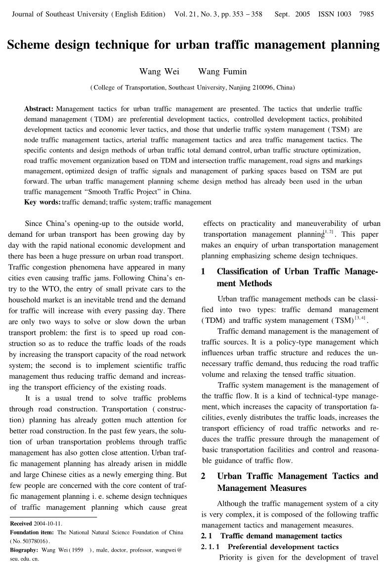 关键词:交通需求;交通系统;交通管理