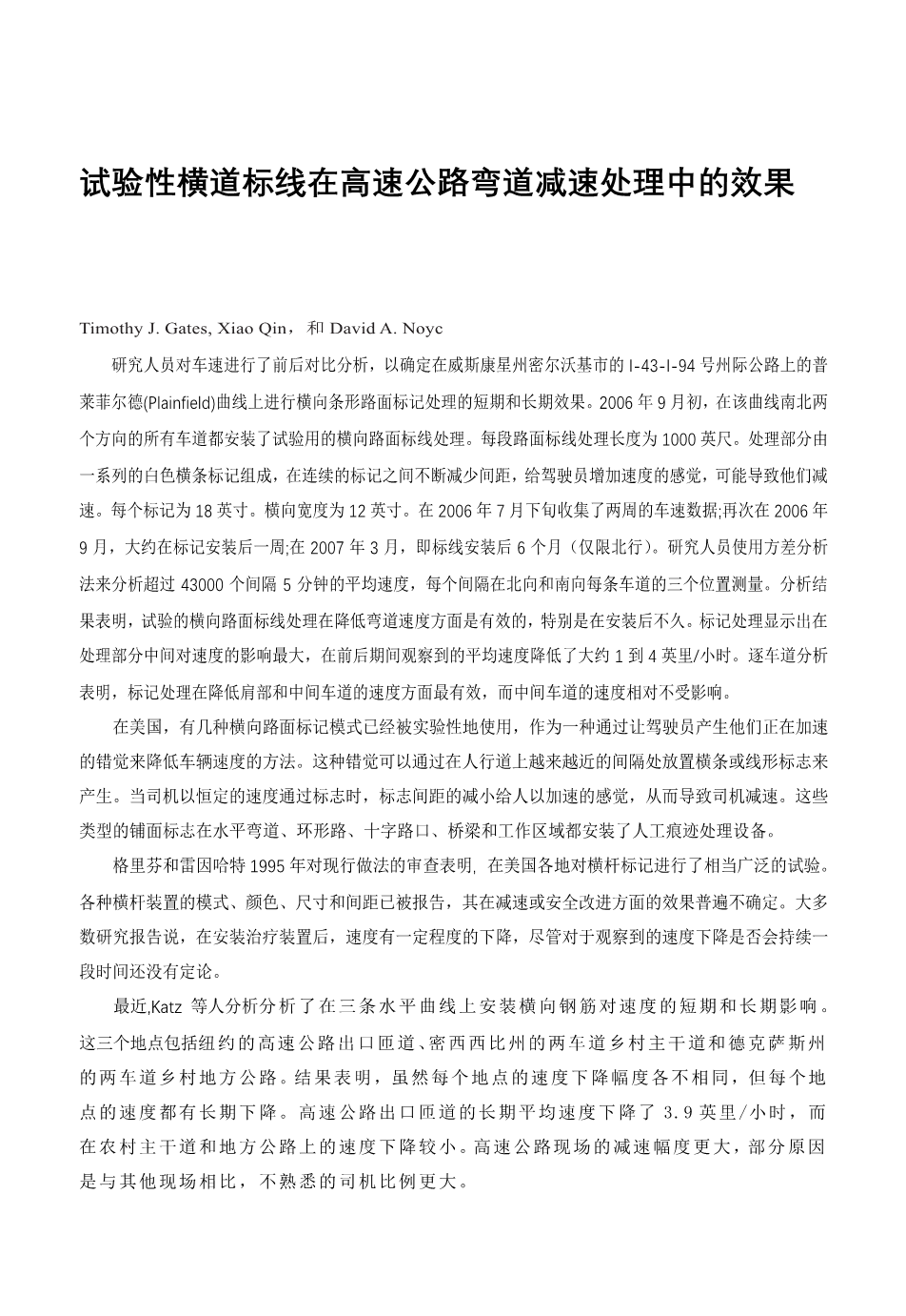 试验性横道标线在高速公路弯道减速处理中的效果外文翻译资料