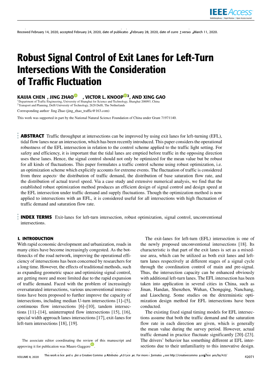 关键词:左转交叉口出口车道,稳健优化,信号控制,非常规交叉口