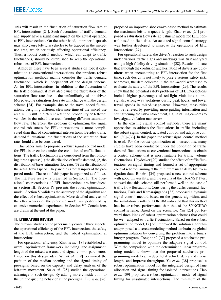 通过文献回顾,可以发现以往的稳健优化方法主要考虑了交通需求的波动性。因此,在交通需求和供给波动的条件下,建立一个适用于EFL交叉口的鲁棒信号控制模型仍然是一个挑战。