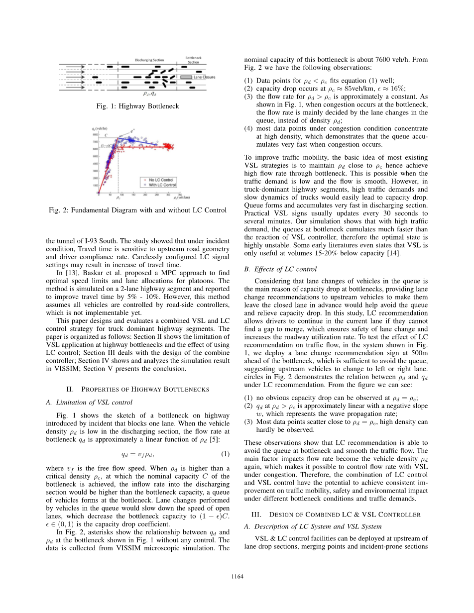 高速公路拥堵通常发生在事故、车道下降等引入的瓶颈处。在我们的研究中,我们了解到VSL方案面临的一个问题是,大多数车道变化发生在瓶颈附近,造成拥堵和恶化的可能的行驶时间改善。VSL。尤其是在货车占优势的公路路段,排队的单辆货车换道可能会打破开放车道的交通流,导致严重的交通混乱。这一观察促使我们使用组合车道变更(LC)和VSL控制策略来减少瓶颈处的拥堵。