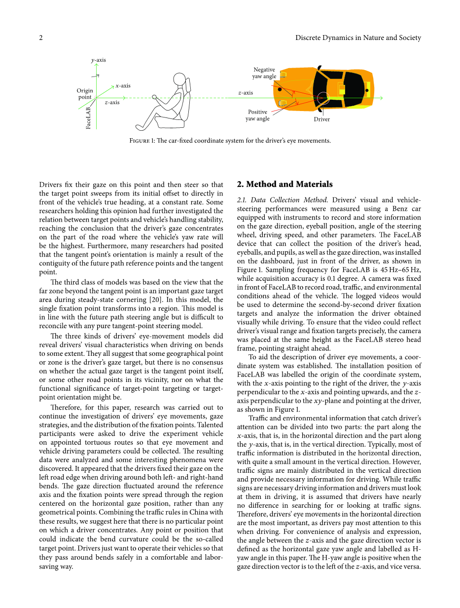 几十年来,人们做了大量的工作,用真实和模拟的方法来研究驾驶员在自然任务中的视觉特征[2-8]。弯道行驶时的视觉策略和注视点的分布是研究最广泛的方面之一。由于研究对象的注视行为在空间和时间上都与任务条件密切相关,因此很难推导出一个在任何情况下都适用的完美理论或模型[6-8]。