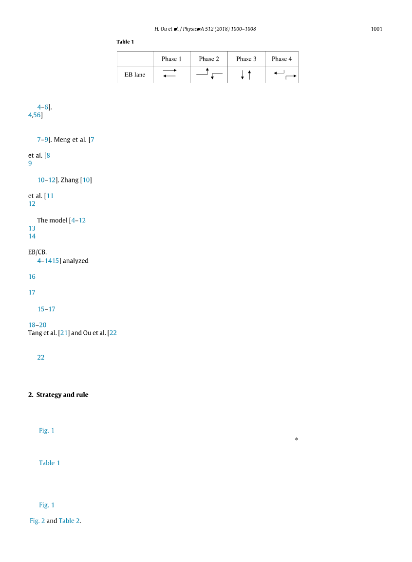 3. 提出了一些CA(细胞自动机)模型来研究CB在不同条件下的运动[4-6]。Nishinari和Takahashi[4,5]开发了BCA(Burgers CA)模型和电动自行车CA(Extended BCA)模型。江等人[6]分析了CBS之间的相互作用,提出了一种改进的电动自行车CA模型来探索CBS引起的复杂现象。部分模型研究了交叉口附近复杂的现象[10-12]。任志刚等[11]提出了一个模型来探索CB的运动,以及发生在中间路段的车辆队列的形成和消散。Radhakrishnanetal[12]开发了一个与其他和其他干扰研究相匹配的模型,该模型显示了由半直行交通流或信号中间路段引起的有序交通现象。