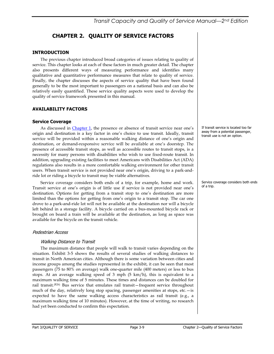 前一章介绍了与服务质量有关的广泛类别的问题。本章将更详细地介绍这些因素。本章还介绍了衡量绩效的不同方法,并确定了许多与服务质量相关的定性和定量绩效指标。最后,本章讨论了服务质量的各个方面,这些方面通常被认为对全国乘客来说最重要,也可以相对容易地量化。这些服务质量方面用于开发本手册中提供的服务质量框架。