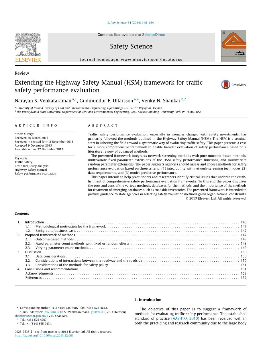 所提出的框架将网络筛选方法与纯粹的基于结果的方法,HSM安全性能函数的多元固定参数扩展和多变量随机参数扩展相结合。本文建议各机构应根据三个标准评估和选择安全绩效评估方法:(1)与网络筛选技术的可配性,(2)数据要求和(3)模型预测性能。