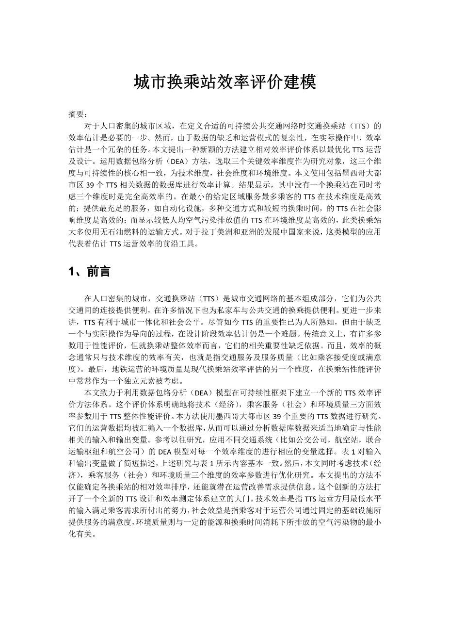 城市轨道交通换乘效率评估及优化研究外文翻译资料 2022-03-14 20:23:41 英语原文共 12 页,剩余内容已隐藏,支付完成后下载完整资料 英语原文共 15 页,剩余内容已隐藏,支付完成后下载完整资料资料编号:[16345],资料为PDF文档或Word文档,PDF文档可免费转换为Word 原文和译文剩余内容已隐藏,您需要先支付 30元 才能查看原文和译文全部内容!立即支付 发小红书推广免费获取该资料资格。点击链接进入获取推广文案即可: Ai一键组稿 | 降AI率 | 降重复率 | 论文一键排版 PREVIOUS NEXT 您可能感兴趣的文章 基于仿真的动态交通分配模型的应用外文翻译资料 微观交通仿真外文翻译资料 在交通分析中的模拟方法外文翻译资料 基于大数据和深度学习方法的极端交通条件下的大 规模全覆盖交通速度估算一中 国案例研究外文翻译资料 车辆一轨道系统垂向相互作用的详细模型外文翻译资料 行人通过狭窄的门道:个体行为对全球流动和微观 动力学的影响外文翻译资料 桥梁工程超高性能混凝土的国际展望外文翻译资料 强台风下大跨度桥斜拉桥的变形监测与分析外文翻译资料 隧道内铁路交通对建筑物振动的影响:数值研究外文翻译资料 利用三维时域有限元分析模拟铁路引起的地面振动外文翻译资料