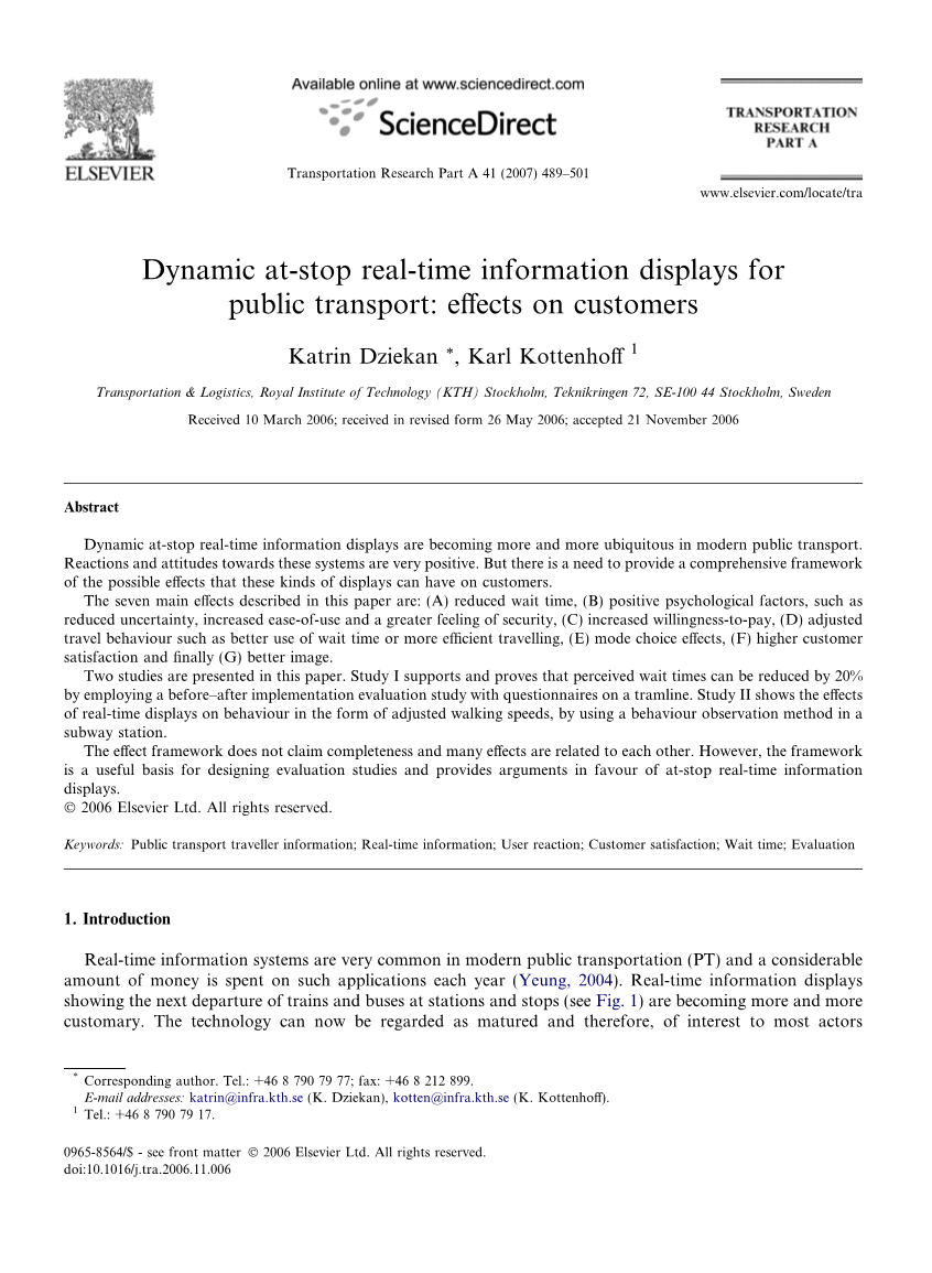 现代公共交通中动态实时信息显示正变得越来越普遍。对于这些系统的反应和态度是非常积极的。但是,我们有必要提供一个全面的框架来确定这些显示的信息可能对出行者产生的影响。